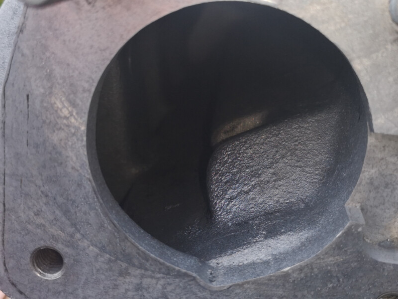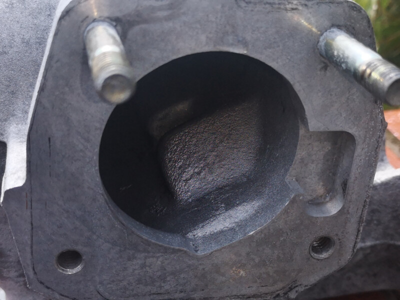 I can see that the part of the chamber which is is sprayed with fuel by the injector is relatively clean, however the outer housing has a thin layer of what I suspect is burnt oil.