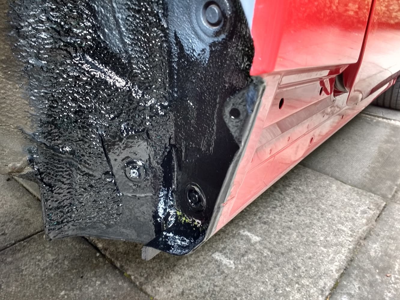 I was also lead to believe that rust can form on the rear (inside) of the area shown in red on the attached and it only becomes apparent when the paint on the outside blisters. I’d like to get to the inside of the rear wing and apply some rust prevention to this area where possible so am trying to identify a bung hole or similar that allows me to get a Waxoyl probe in there