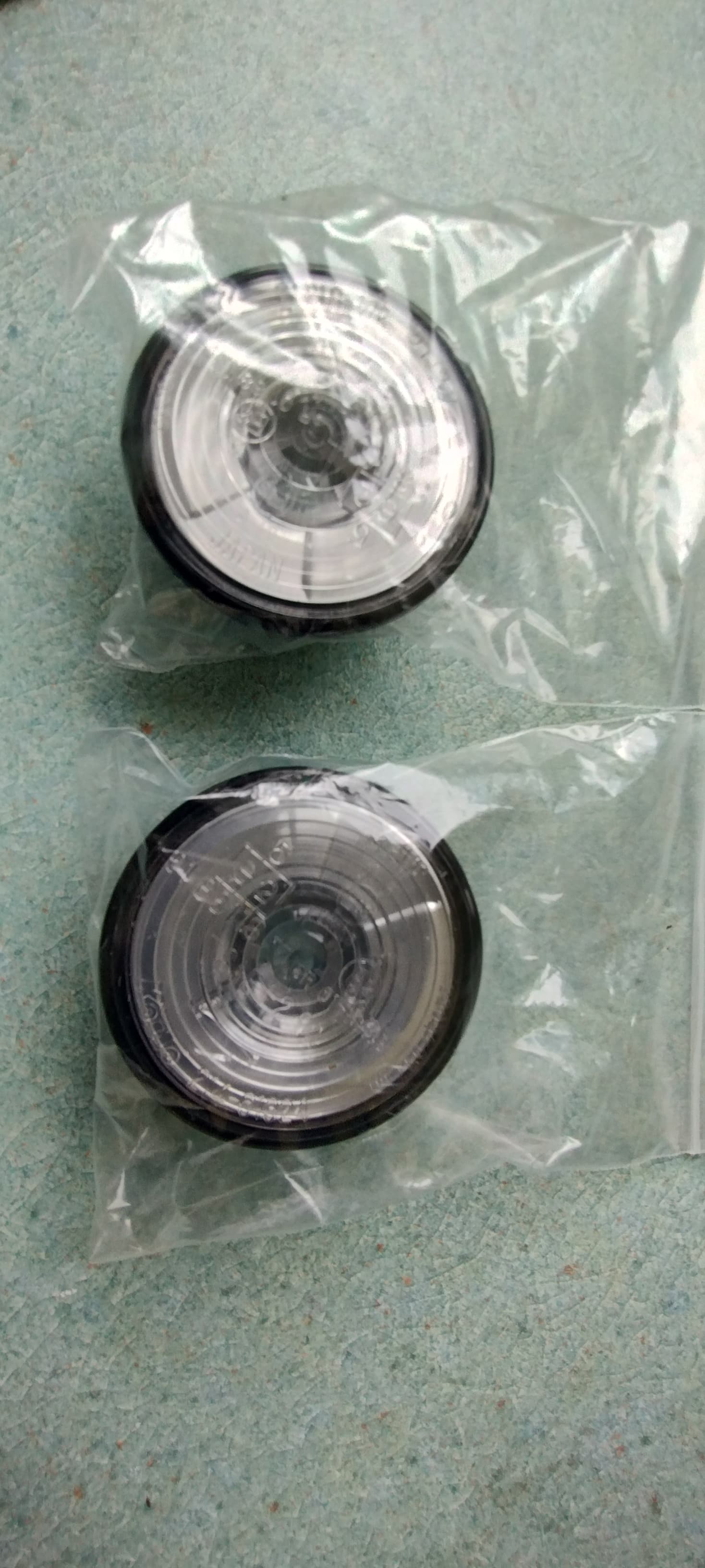 A pair of clear side Repeaters, black finish rim complete with orange tint bulbs, these are used.