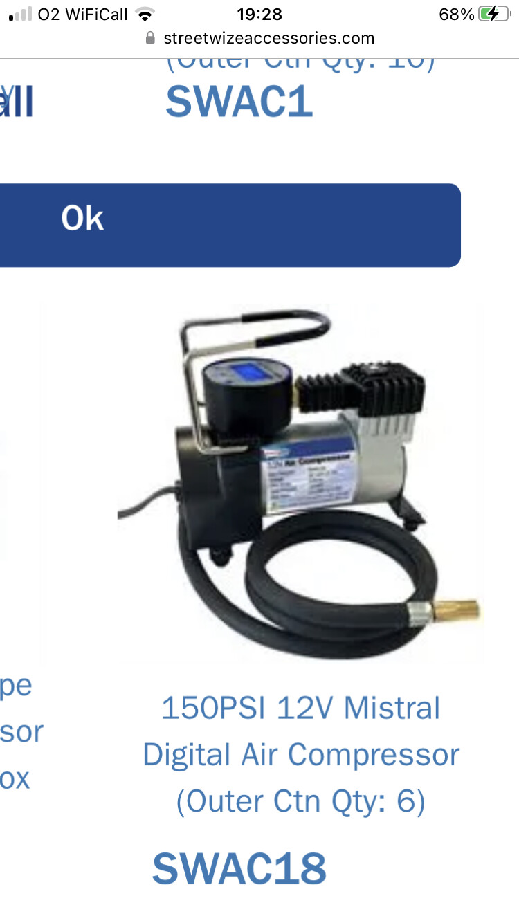 Looking on eBay they are selling the inflator kits to suit Mazda’s, the Ring ones as above post come in at around £25