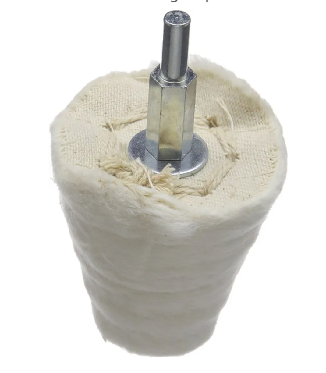 Cone polishing goblet that attaches to a drill plus any sort of polish you have at hand