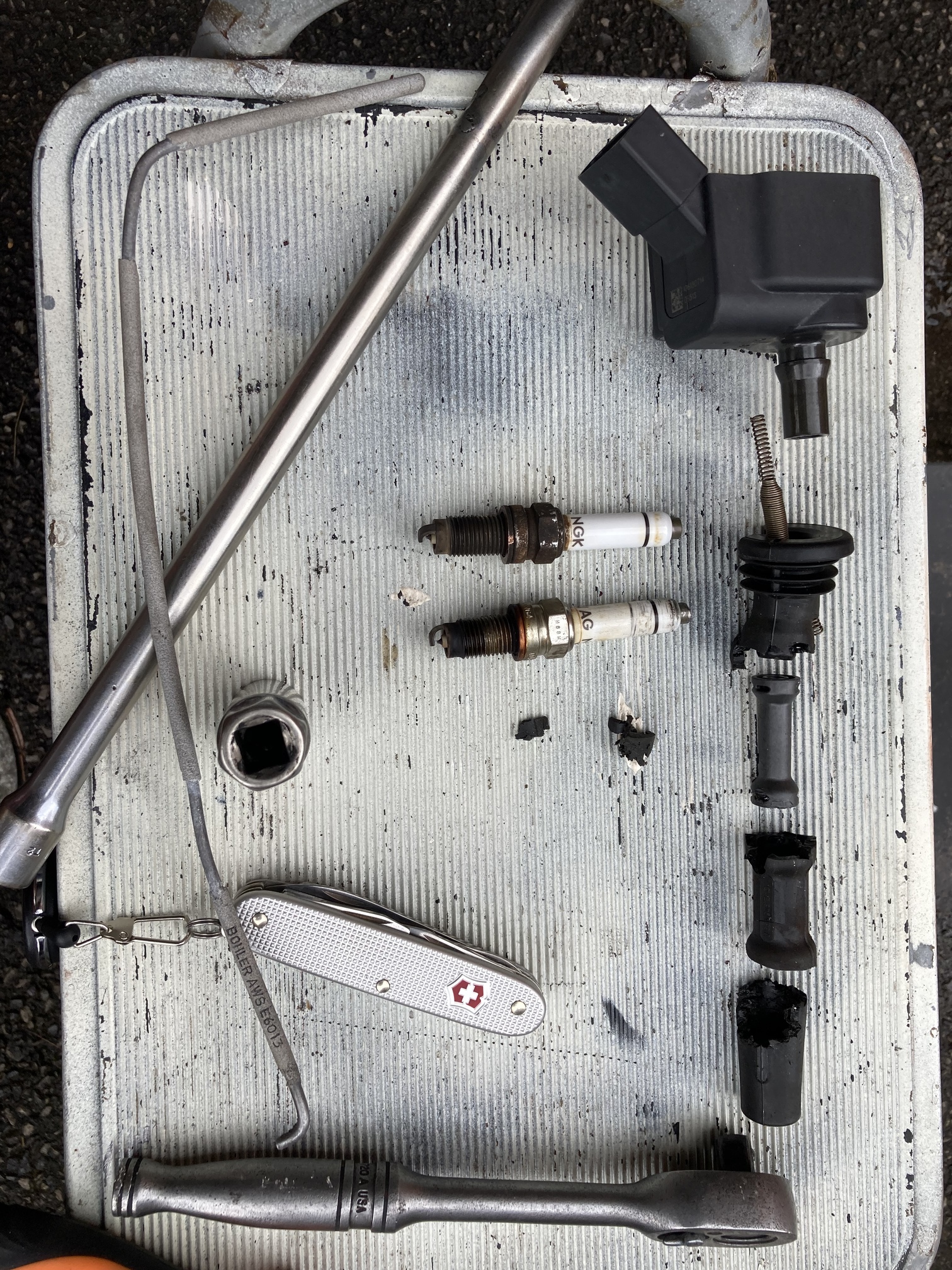 2nd coil pack head was snapped off and held in place by the coil pack bolt, car was and still is running fine but i didnât want to go any further until i can get the coil tube out.