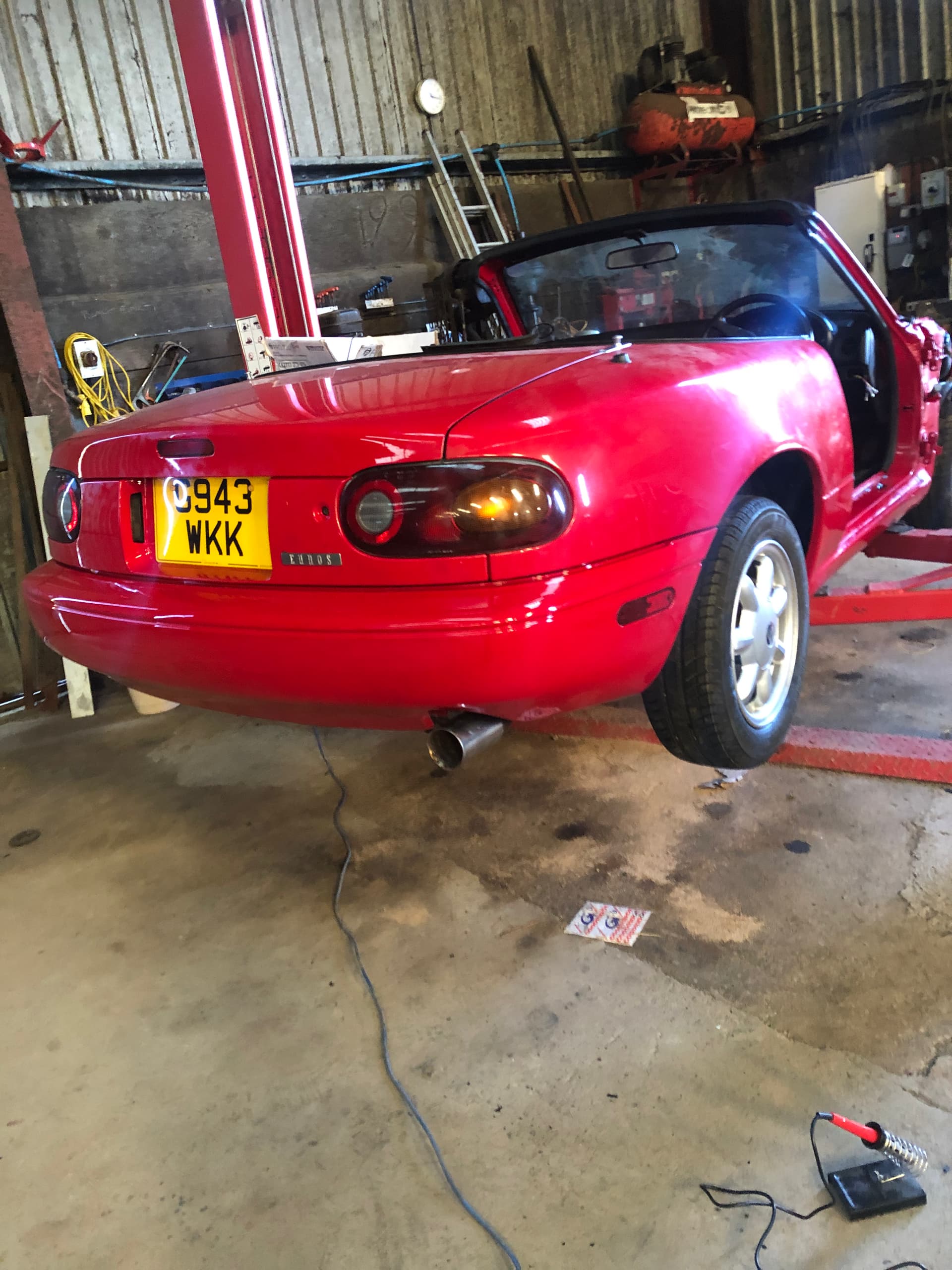 After 7 years off the road this early MX5 had its first tarmac jaunt today for a MOT, passing with no advisories!
