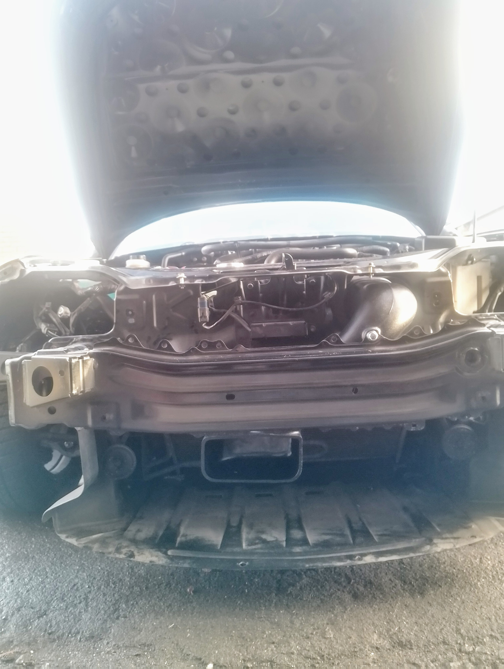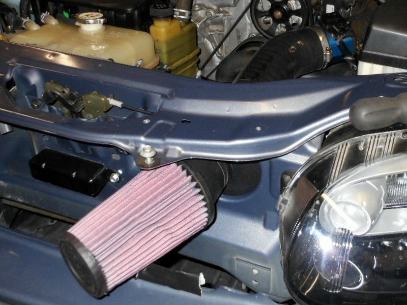 Zip tie some intake ducting (old school is to use tumble dryer ducting from B&Q), from the mouth, through the bumper to the filter. Will probably create a venturi-like effect.