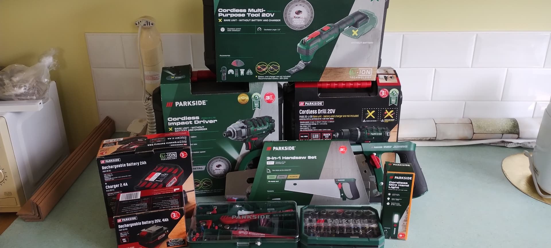 Still, bought with a purpose, my old cordless drill/driver is useless as I can’t get a battery for it, I need another drill (cordless) instead using my corded drill and the multi tool will be handy, always wanted on. Bought when they were on offer, or for the batteries buy one get one free.