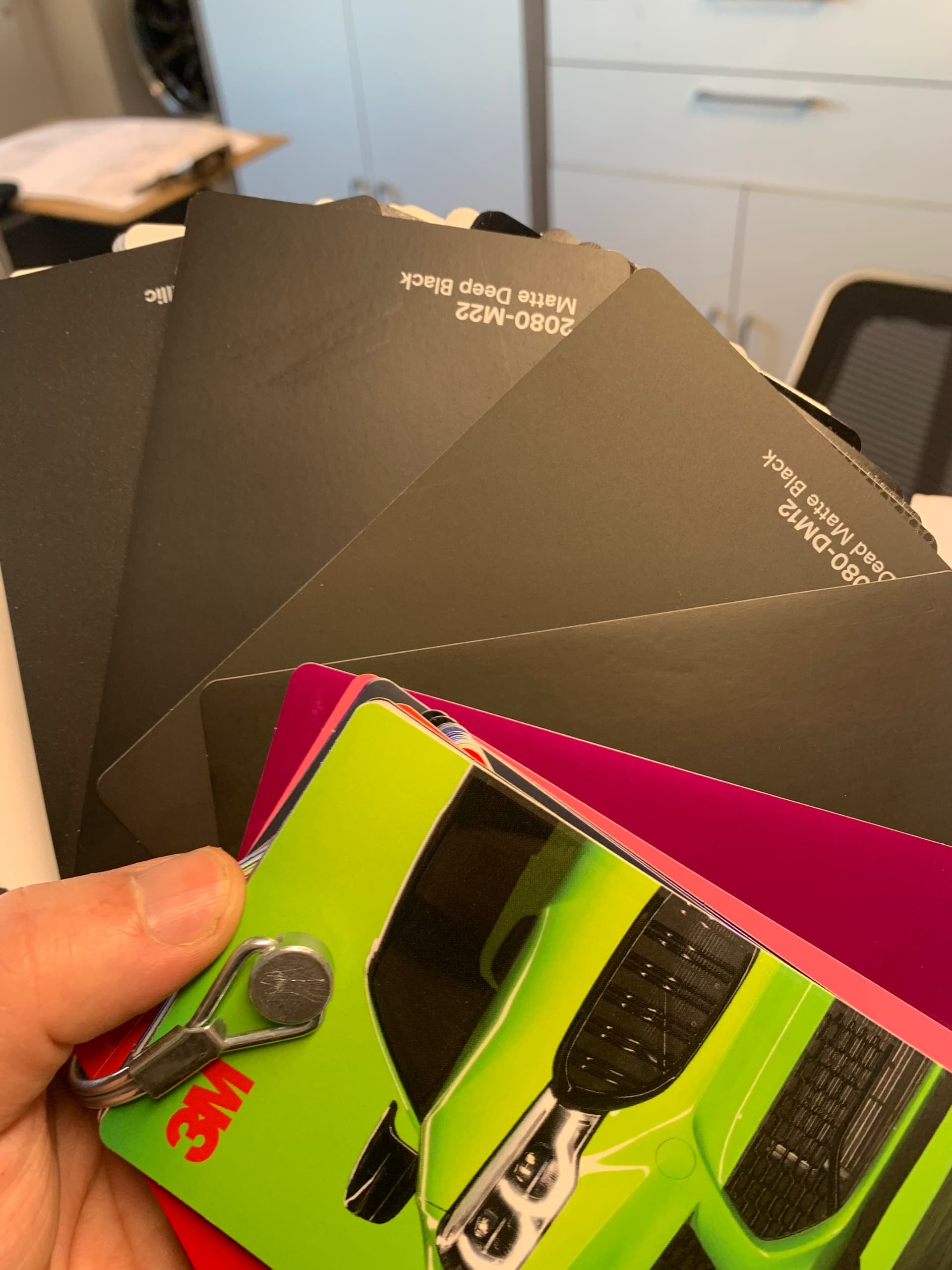 One thing that really helped was taking the samples to the car and seeing them in both shade and sunlight. The angle of light falling on the wrap and contrast with the car’s paint were both key. We changed our minds several times. I’m normally good with decisions, but this was a ■■■■■■!
