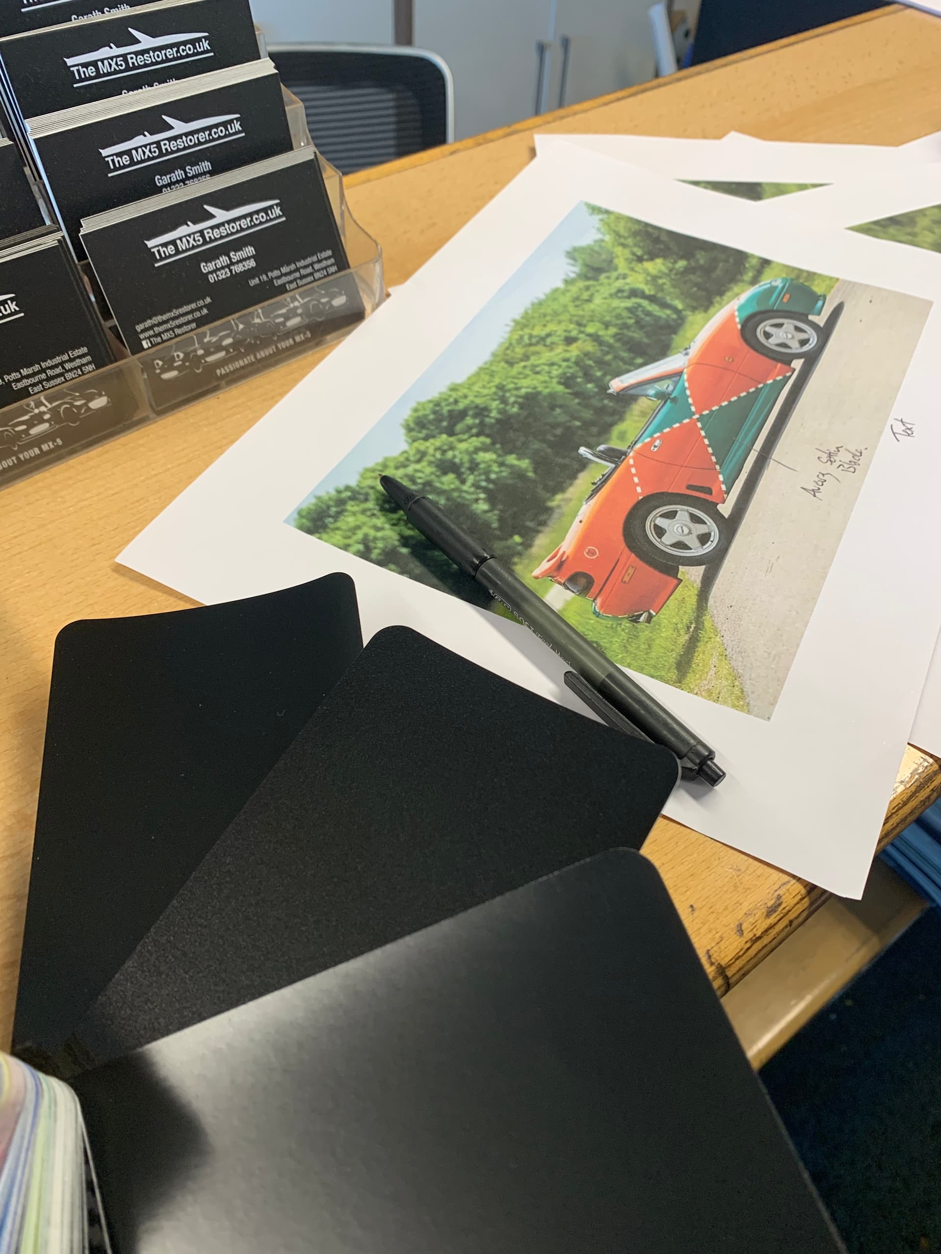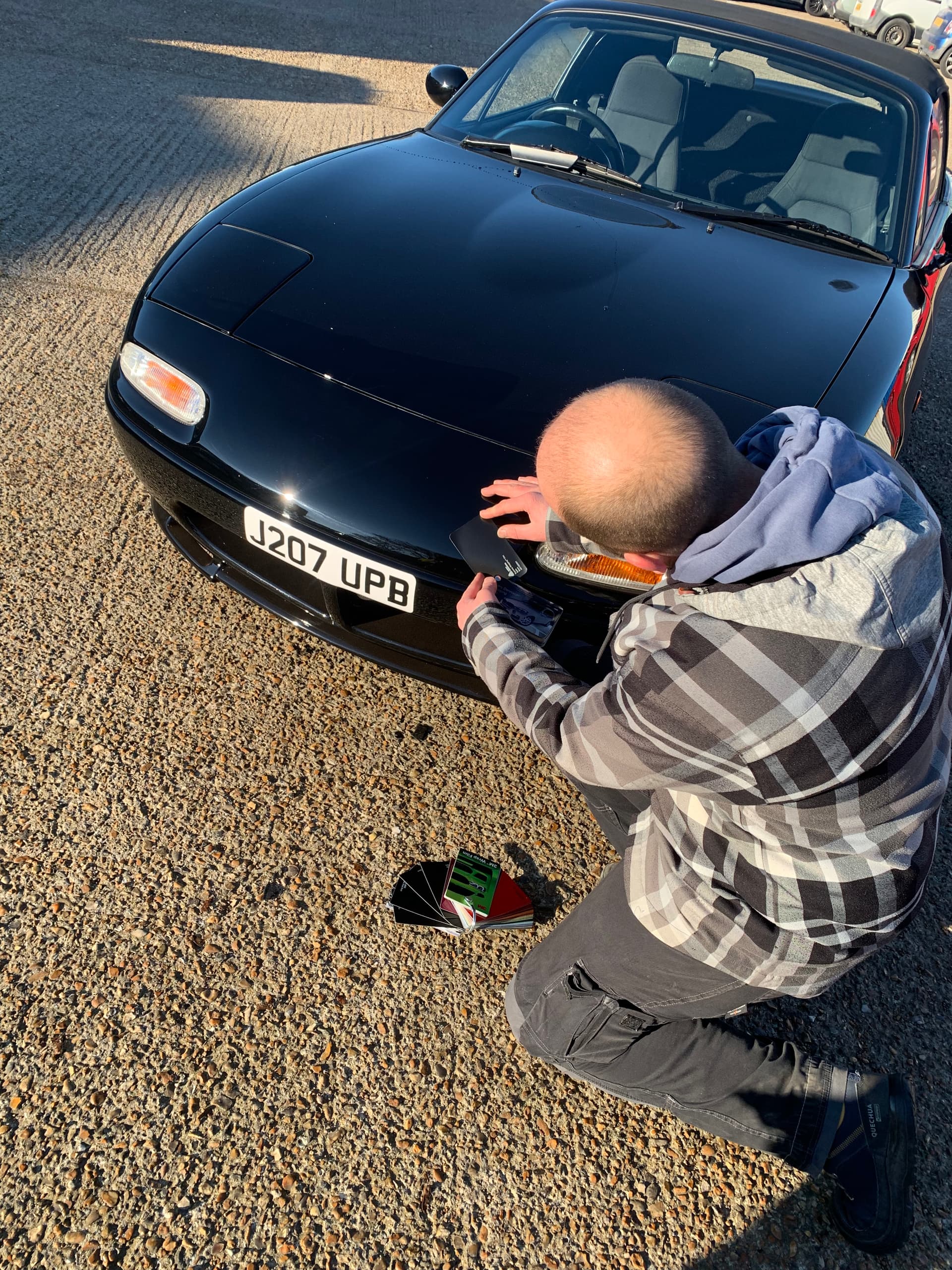 He came - A lovely guy called Guy from Vinyl Design in Eastbourne. He has previously done the MX5 Restorer’s Green & Orange Le Mans, so I knew I was in good hands.