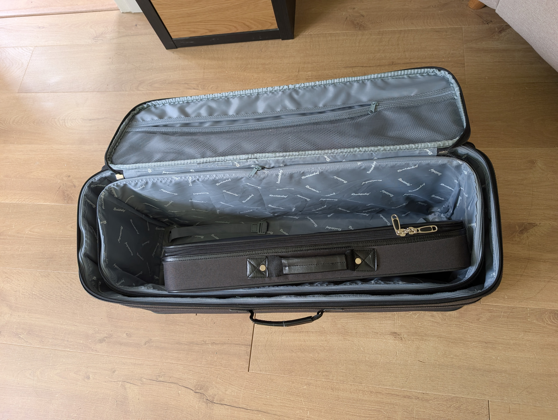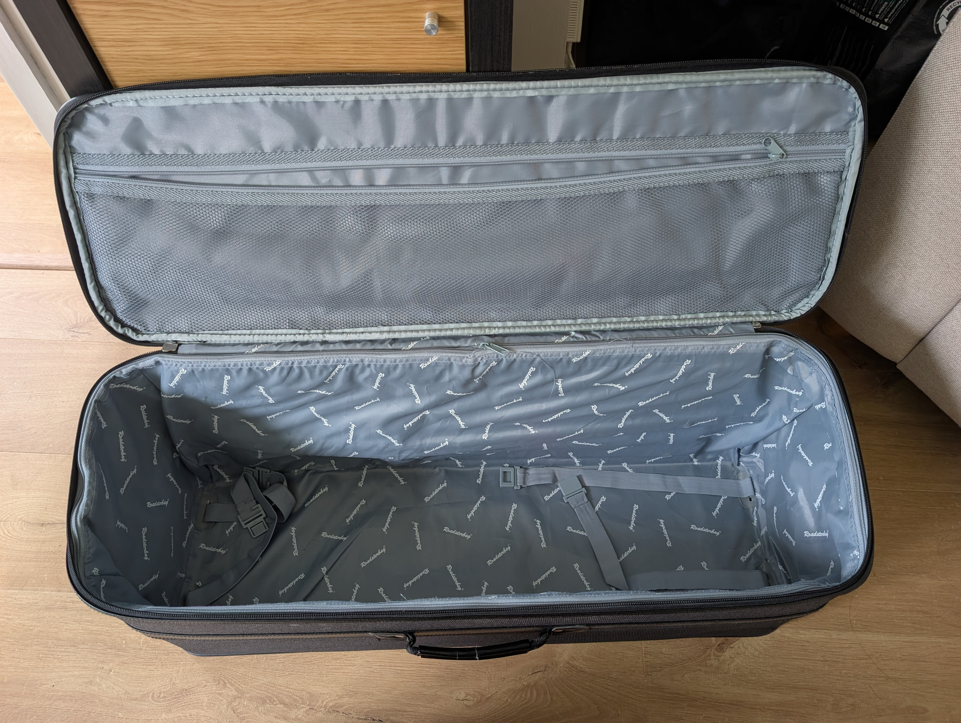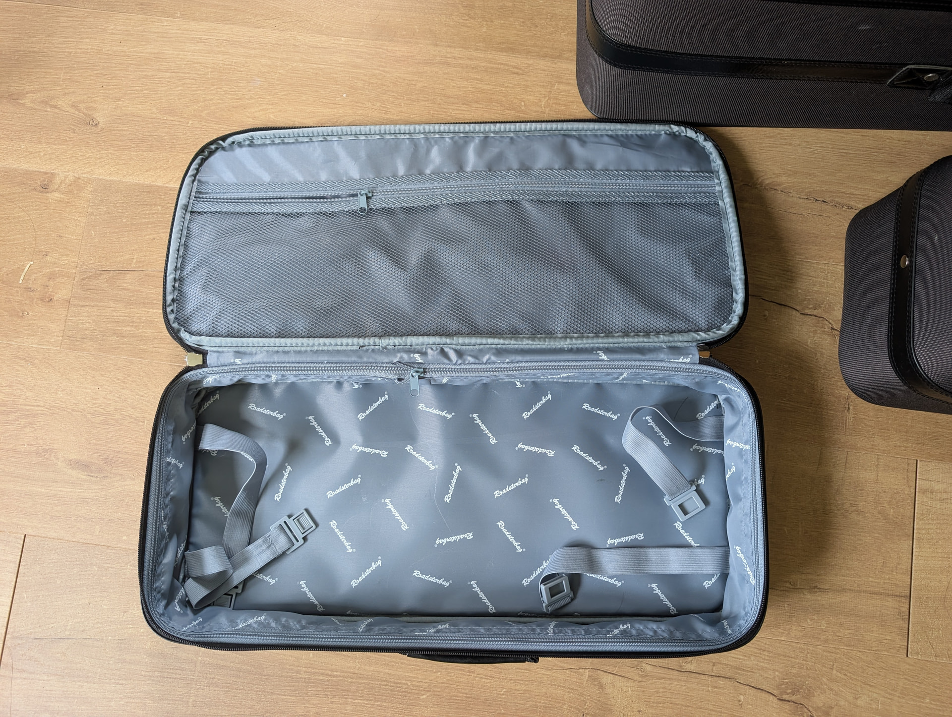 These fit perfectly in the boot of the mx-5 (soft top or PRHT) and all fit into the larger bag for storage.