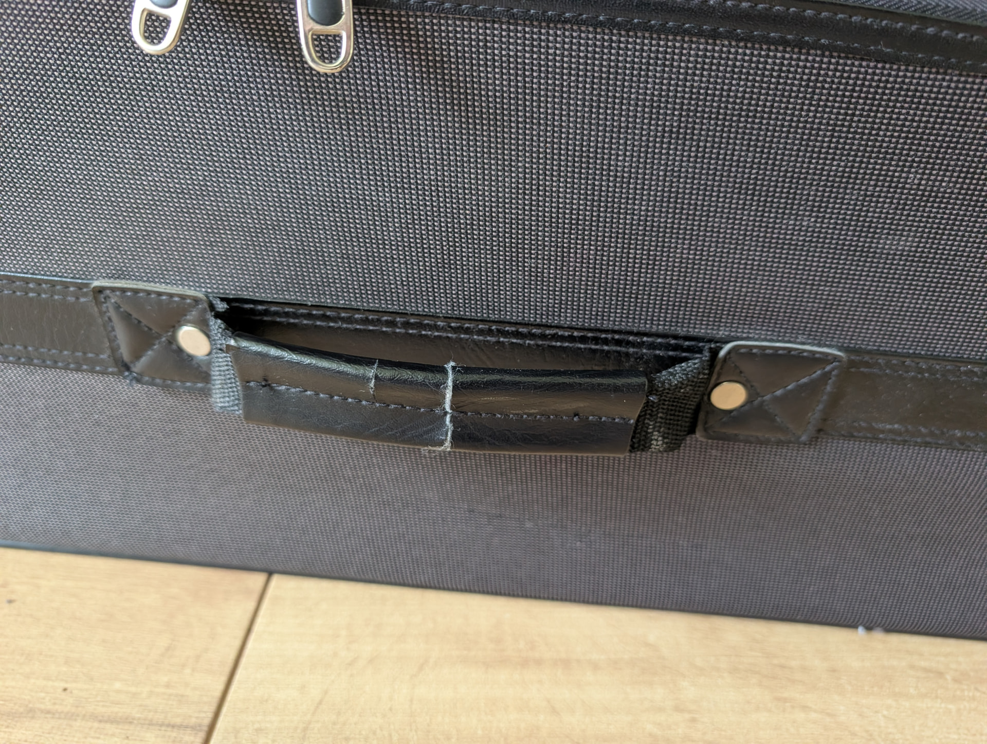 All zips and catches work, only one split on the leather handle of the large bag. See photos