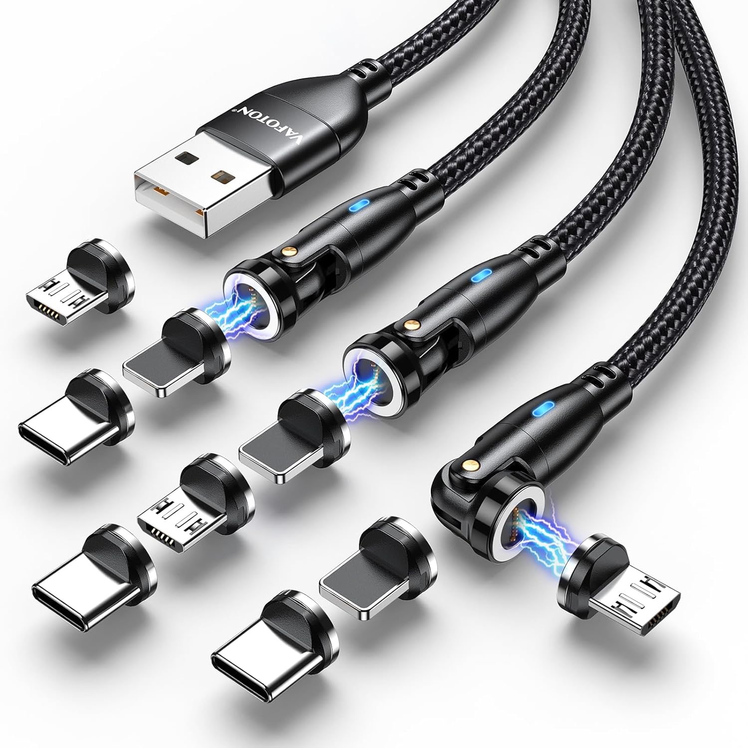 VAFOTON 9Pin Magnetic Charging Cable, 360° & 180° Charging & Data Cable 3Pcs (2M/2M/1M), 3-in-1 USB Charger Cable, 18W Phone Charger for Micro USB,…