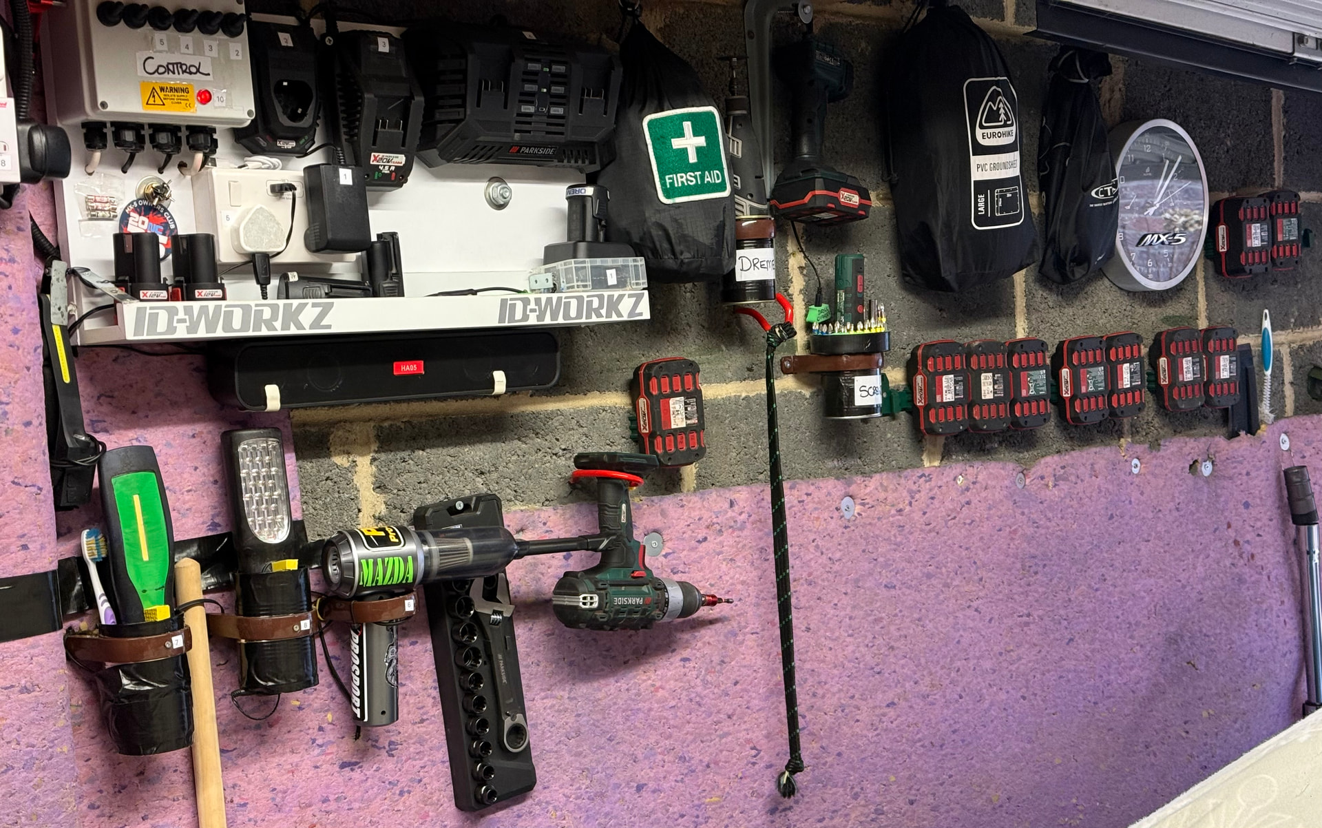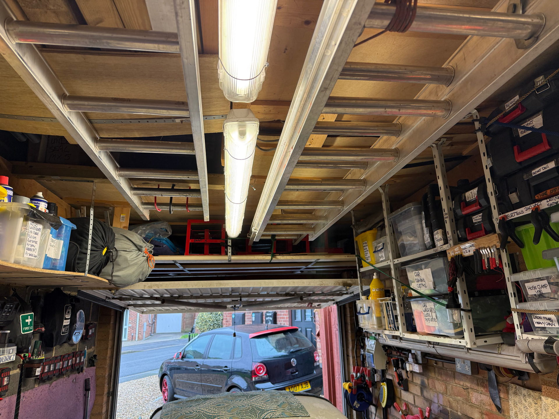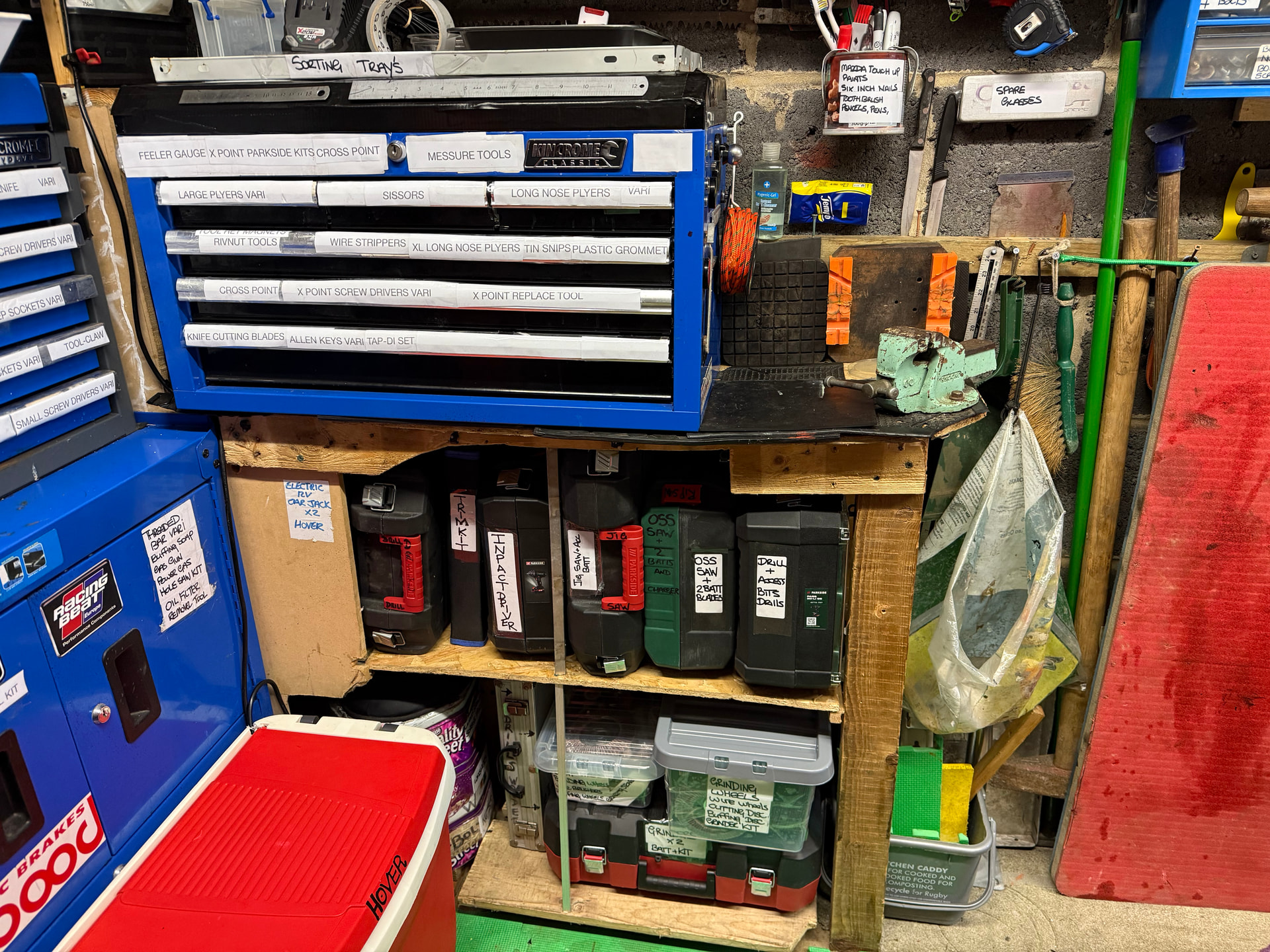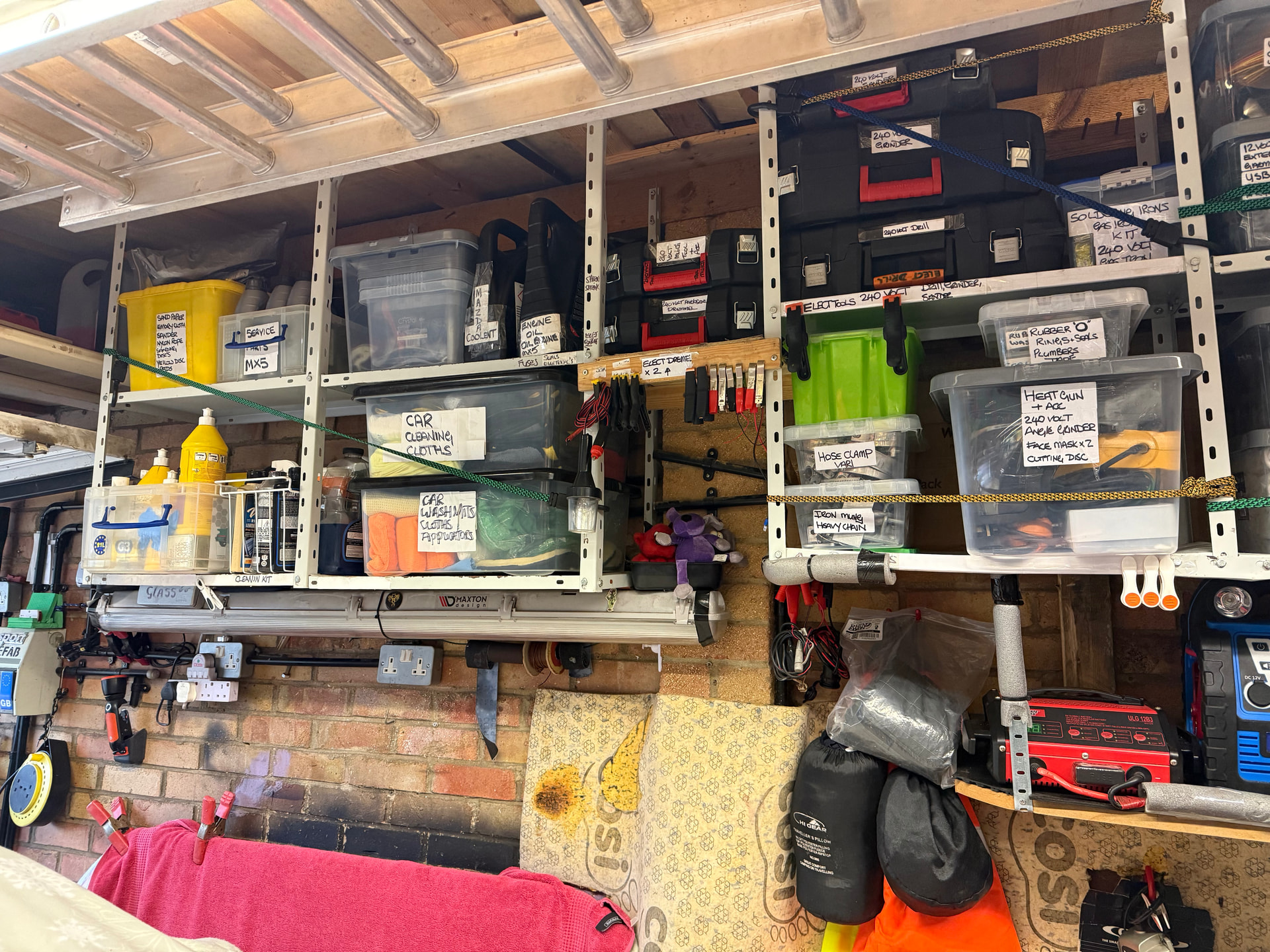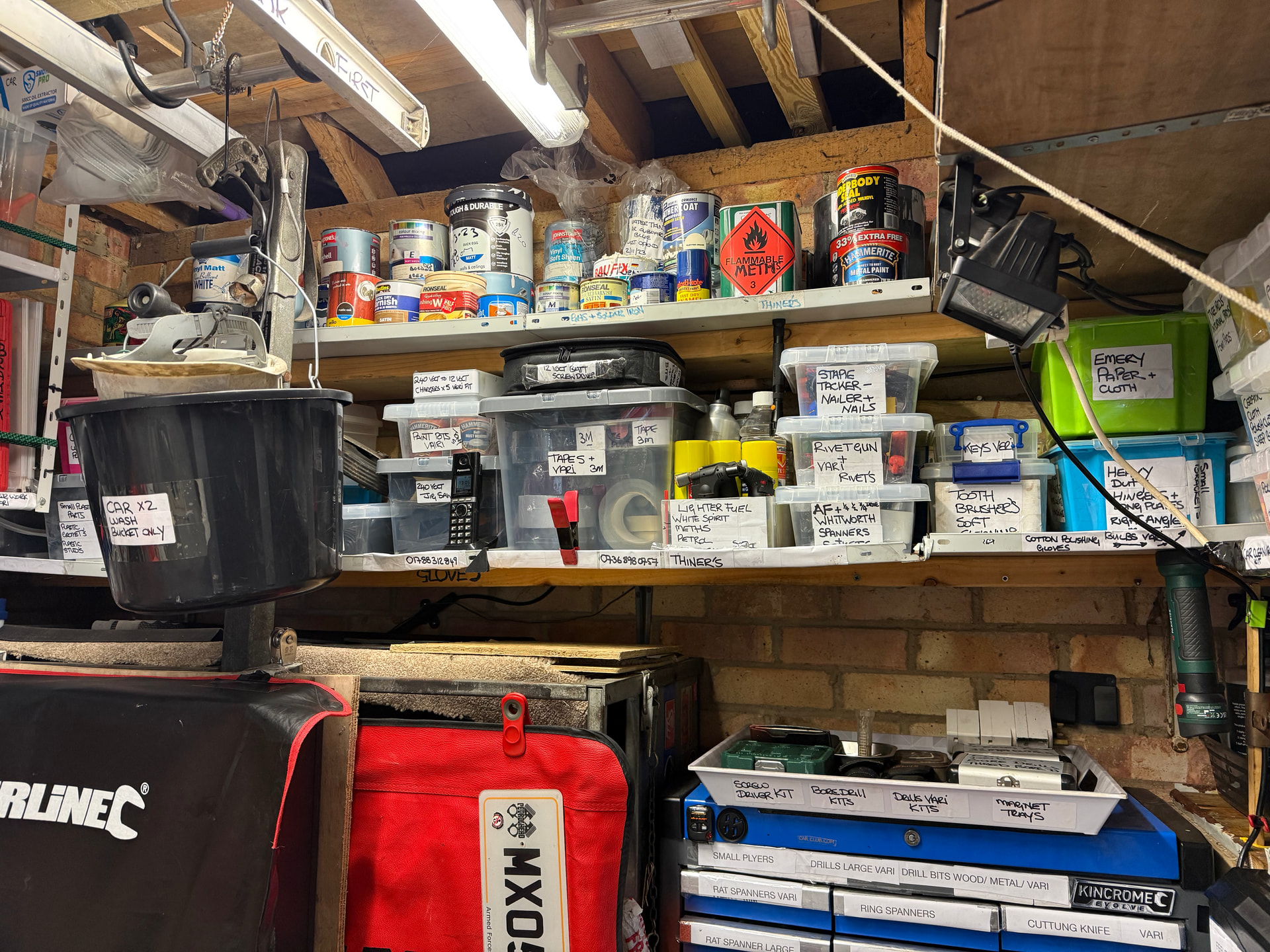 25 years of collecting car/stuff in my garage & loft space, I thought it was time for some order and a clean out …..took two weeks four hours a day no joke…! to sort filter and label every box, (with misspent spelling lol) item in the small unit that I have and get the car in with towing trailer ……built new 12 volt /USB/Usc charging board …ECT just made thing a little more tidy….. few pics