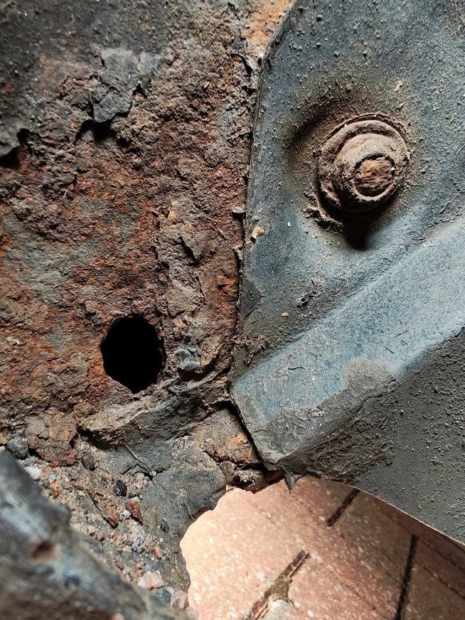 Rust. No rust advisories, but one of the end plates now has a hole in it and the other isn’t far behind. And the “inner sill” (he meant the floor pan) isn’t looking to clever. Knew the lip was a bit flakey but hadn’t investigated further.