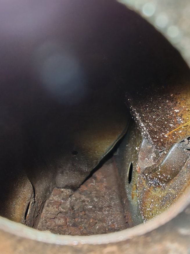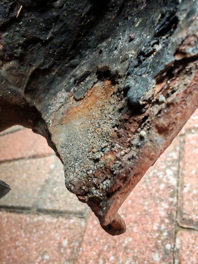As expected the little hole got bigger, and I had a good view of the sill itselt. Above the inspection hole, the metal isn’t rusty inside. Below, its crusty. The sill itself is solid, and the new metal from 2017, once sealand and filler was taken off, was still shiny.
