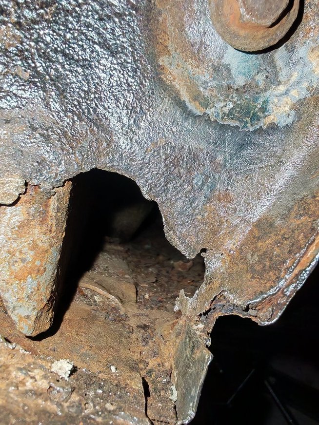 I’’ll have a proper poke around, after the car has sat in the garage drying out, take a wire wheel to it, and see how much metal remains. Hoping it’ll be just a patch up, Other side is rusty as well but no holes.