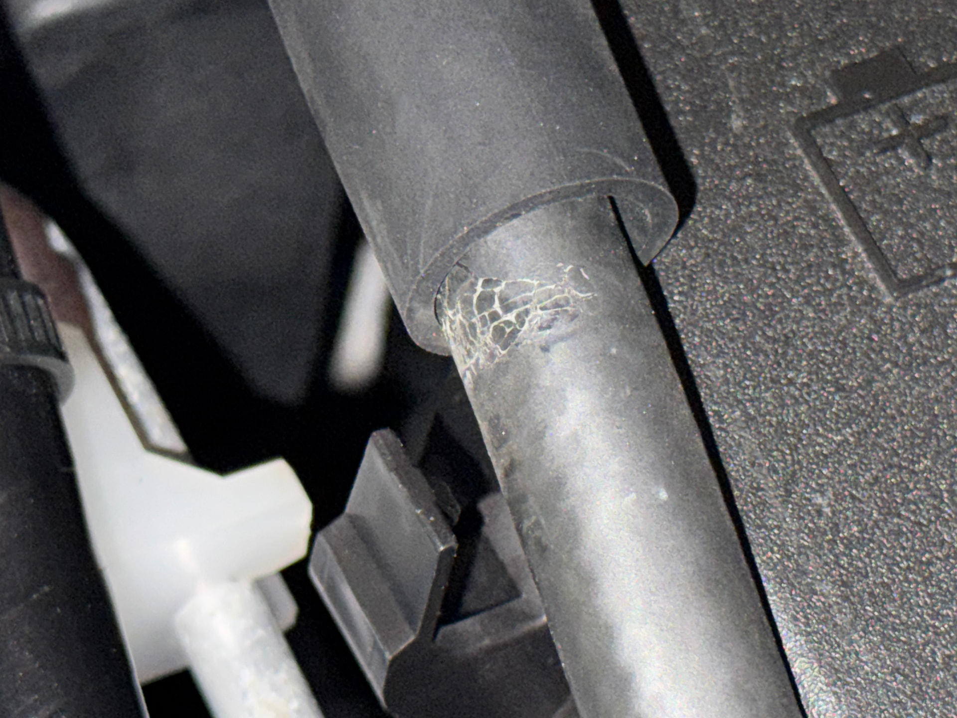 I think it’s because the battery cover clip in the photo has been squeezing the hose too hard, so I’ve left it resting on top of the clip. I’m not sure how serious this is. Has anyone else encountered this?