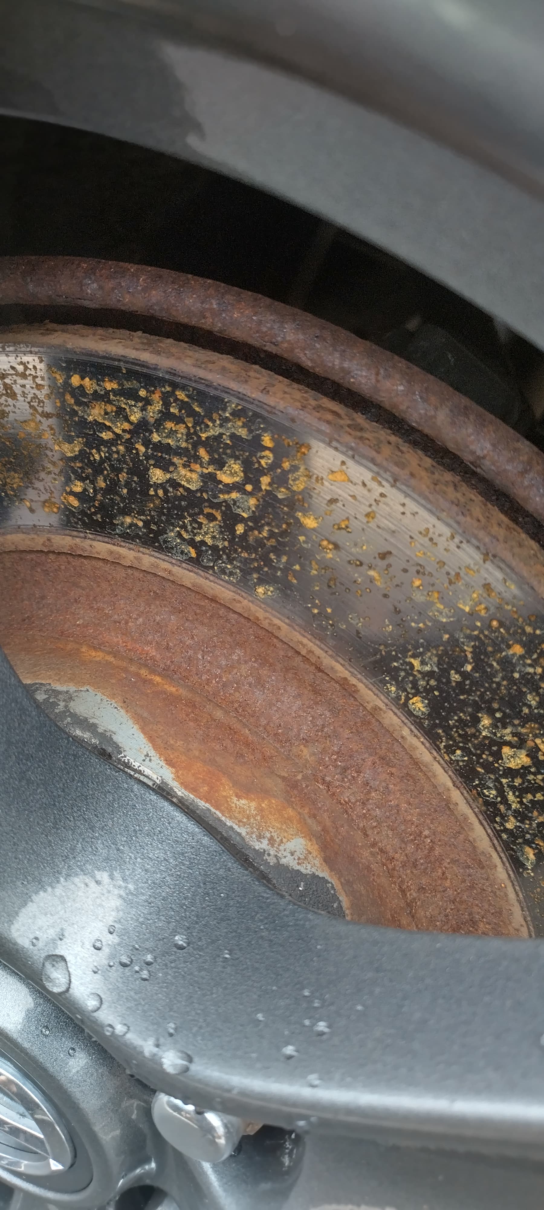 Its probably self explanatory but dont put spray any oil or grease or similar onto the disk to try prevent corrosion and contaminate the pads.