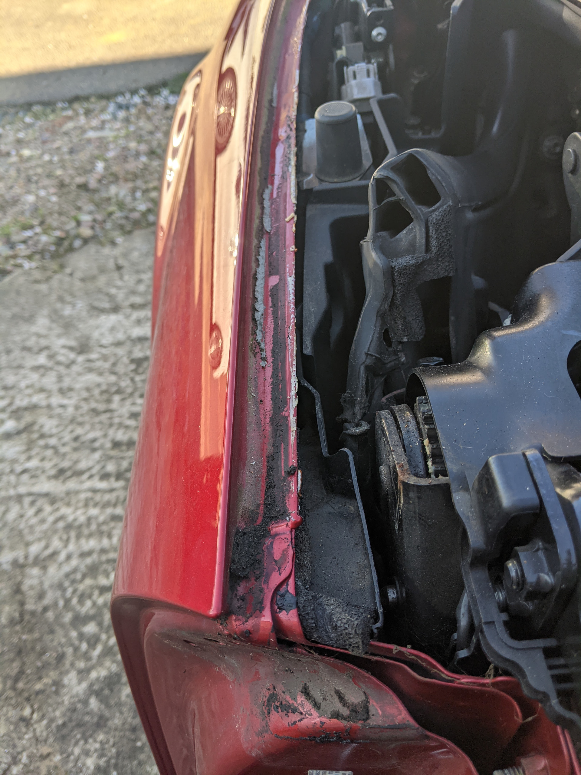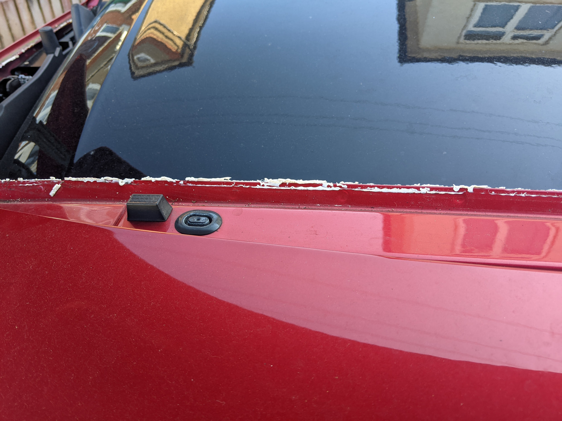 You’ll need some sealant for the seal, (I got some Dowsil DC785+ White Sanitary Silicone Sealant from Toolstation) and some black silicone/gasket maker, etc to join the end parts to the deck seal. A thin brush is useful for cleaning the groove in the seal. A blunt, small flathead screwdriver may help too, but be careful not to damage the seal. A long-nose pliers will be useful, as will some rags to clean the car body too.