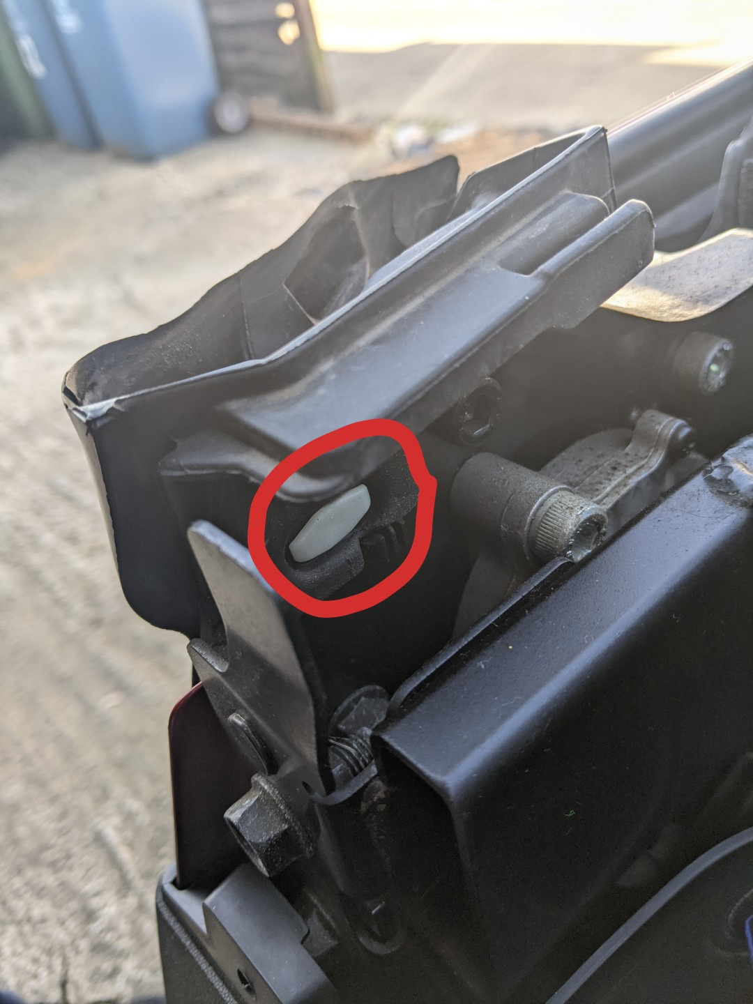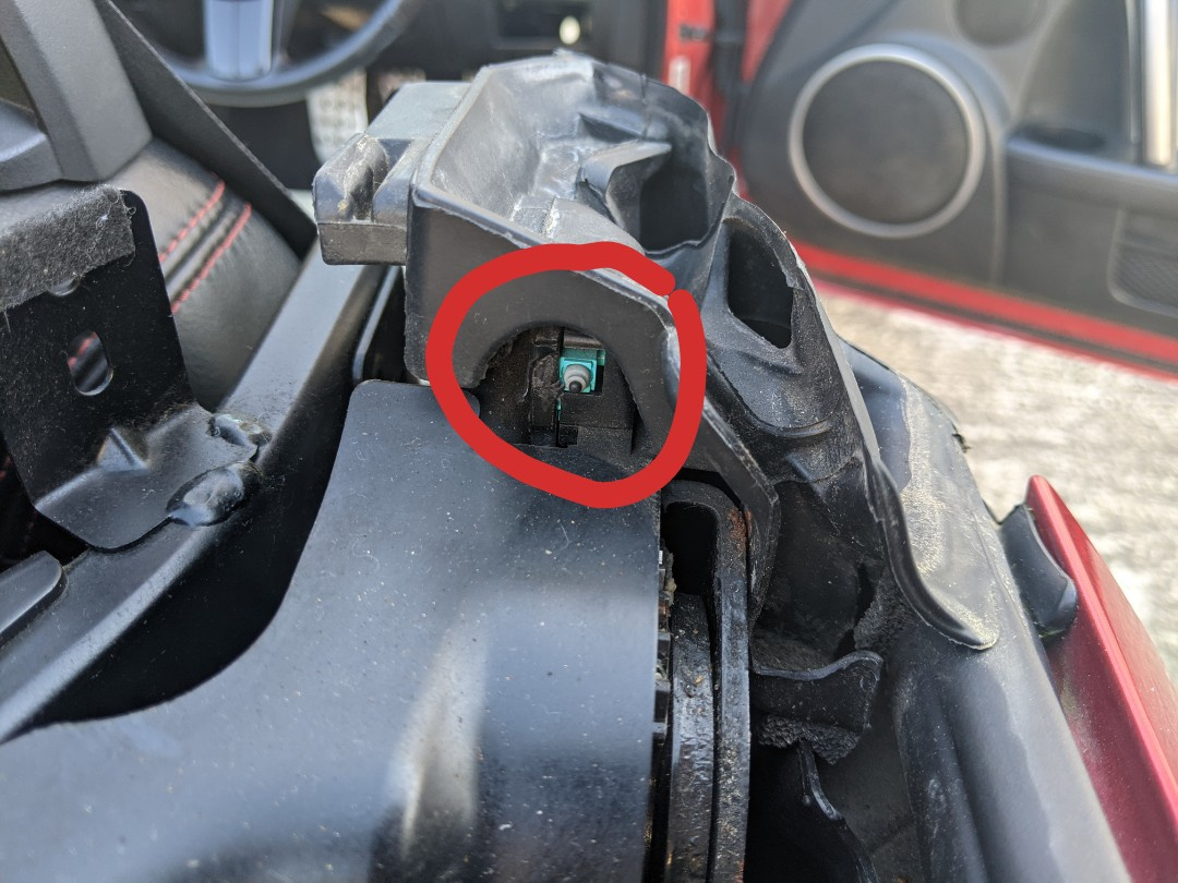 3- Unclip the white plastic clip from the car body. I used long-nose pliers to get to the tangs on it from behind.