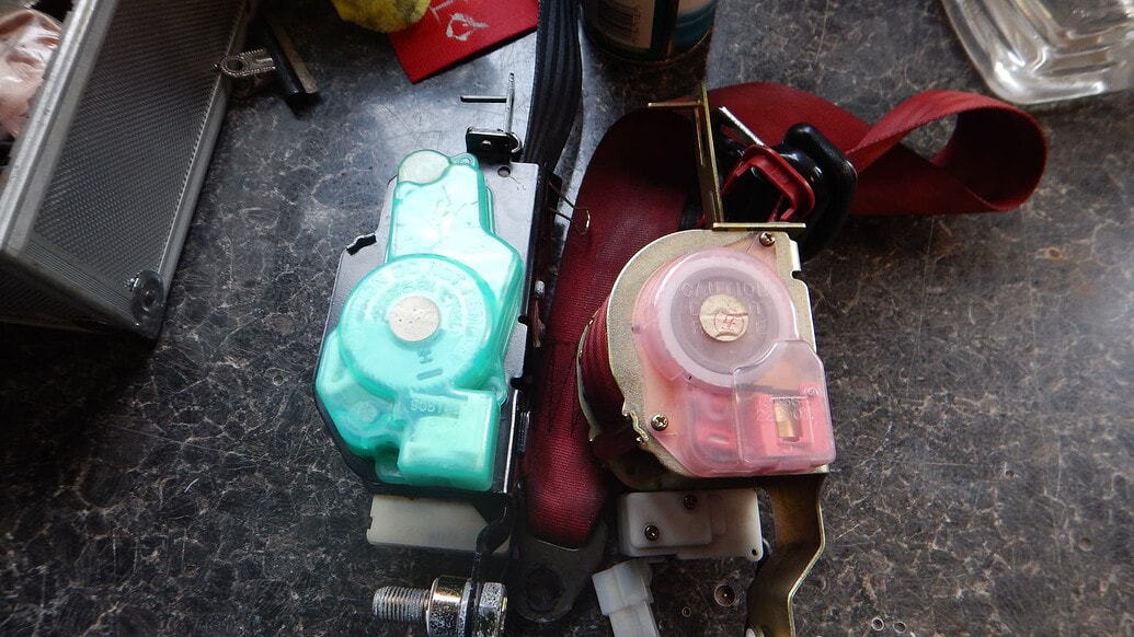 Note, on the Eunos Roadster, there is a “relaxer” mechanism that is electrically operated; the belt automatically slightly loosens the belt when the ignition is applied. I disabled mine long ago by pulling the fuse. Sometime people think the belt is defective, because it feels loose. Its one of the 10A fuses in the internal fusebox under the steering wheel. There are a few different fuse layouts depending on the year, and these late Roadsters might have the most differences.