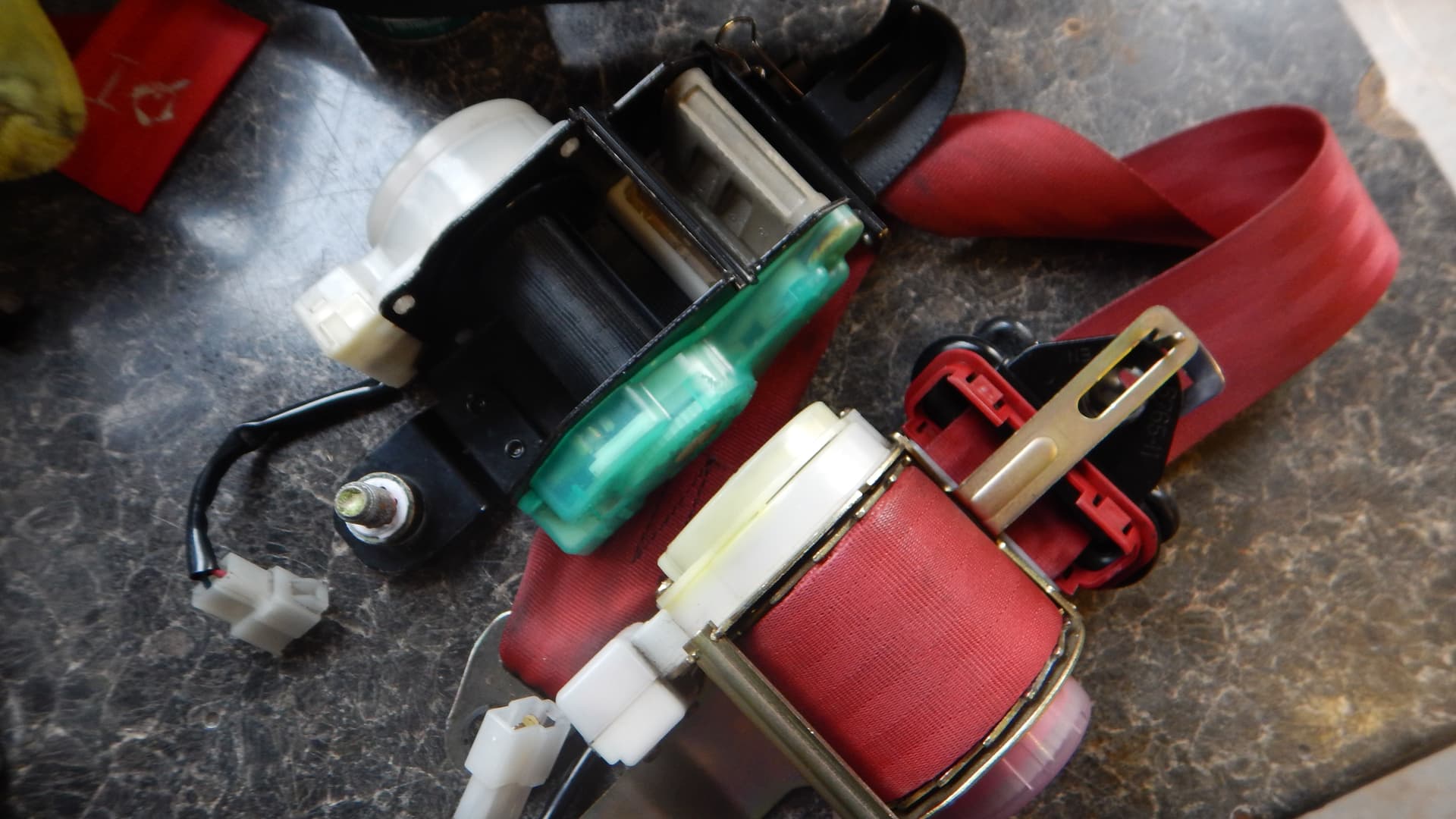 To be clear, the JDM seatbelt relaxer is as it sounds; when you turn on the ignition, the seatbelt relaxes. Most people hate it and pull the fuse. The mechanism is built into the reel.