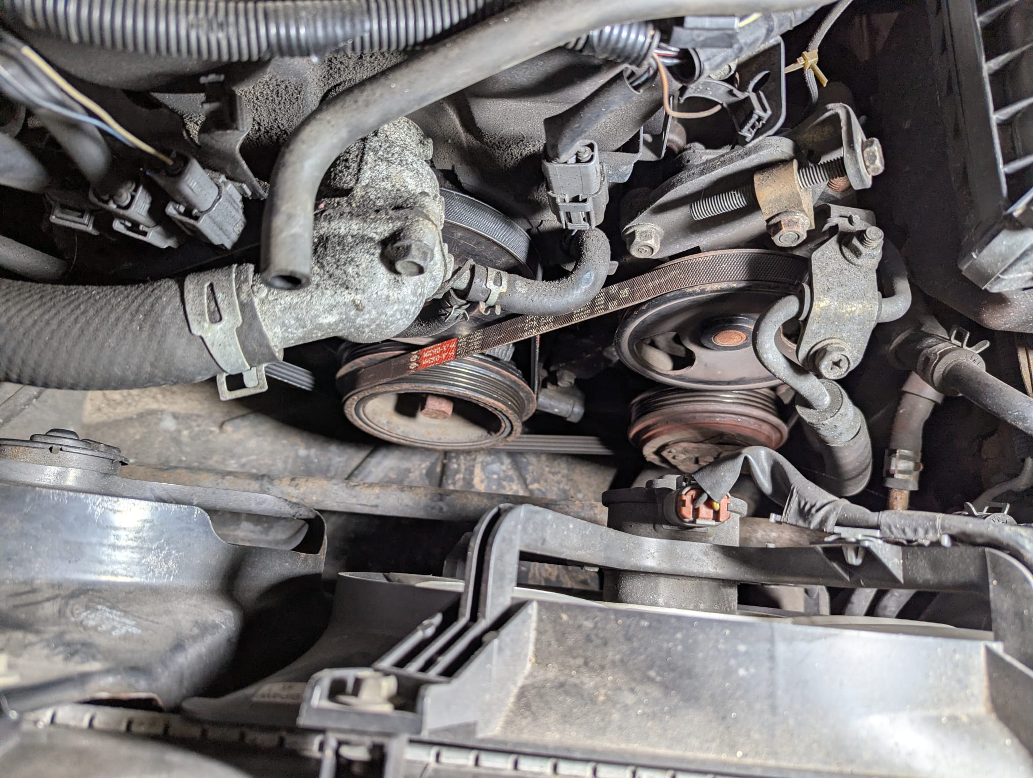 The existing belts I removed weren’t actually in bad condition but were of uncertain age, the alternator one did have slight cracking starting on the inside rubber. On a cold start it was squealing a lot, especially with any load on the alternator.