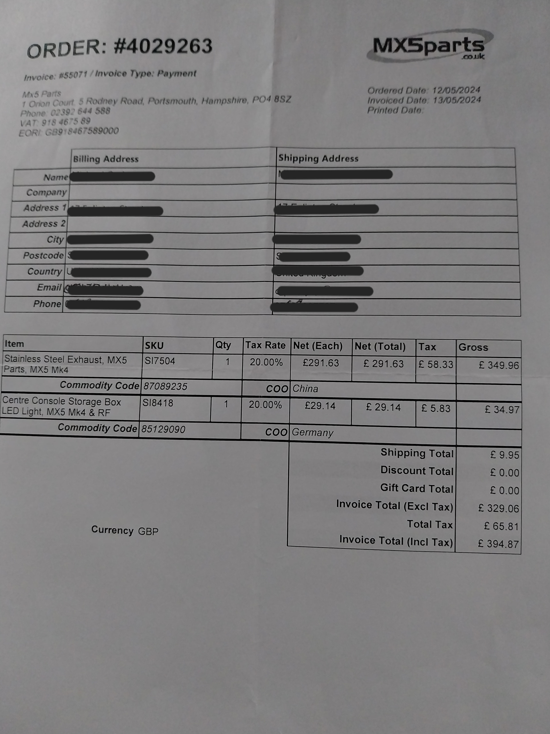 100% Stainless steel exhaust from MX-5 Parts.co.uk own. Has been removed from a Mazda MX-5 Mk 4 ND RF 2.0ltr 2017. Hardly used in full working order with no damage. Only replaced for an Ulter. £349 Inc VAT in May 2025. Collection Only - FY8