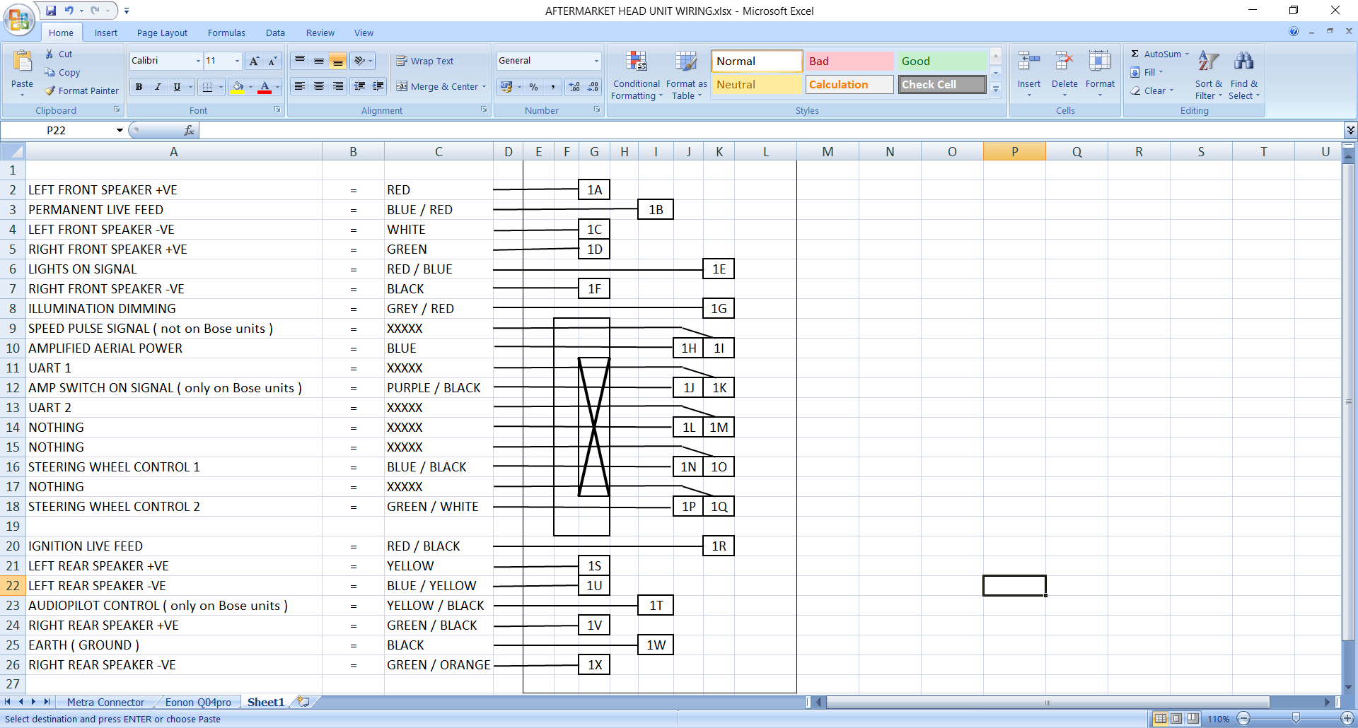 So as a previous owner just connected like’ish colours together without knowing what they were doing, could my actual steering wheel controls be fried as 1N was connected to earth and 1P received a 12v feed from the live antenna/amp trigger ???