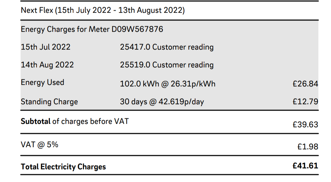Today I received the bill for the last 25 days and it has cost me as follows,