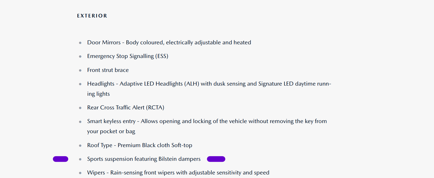 The exclusive line has the Bilsteins. Swapping from a Morgan your car will feel like a Bentley