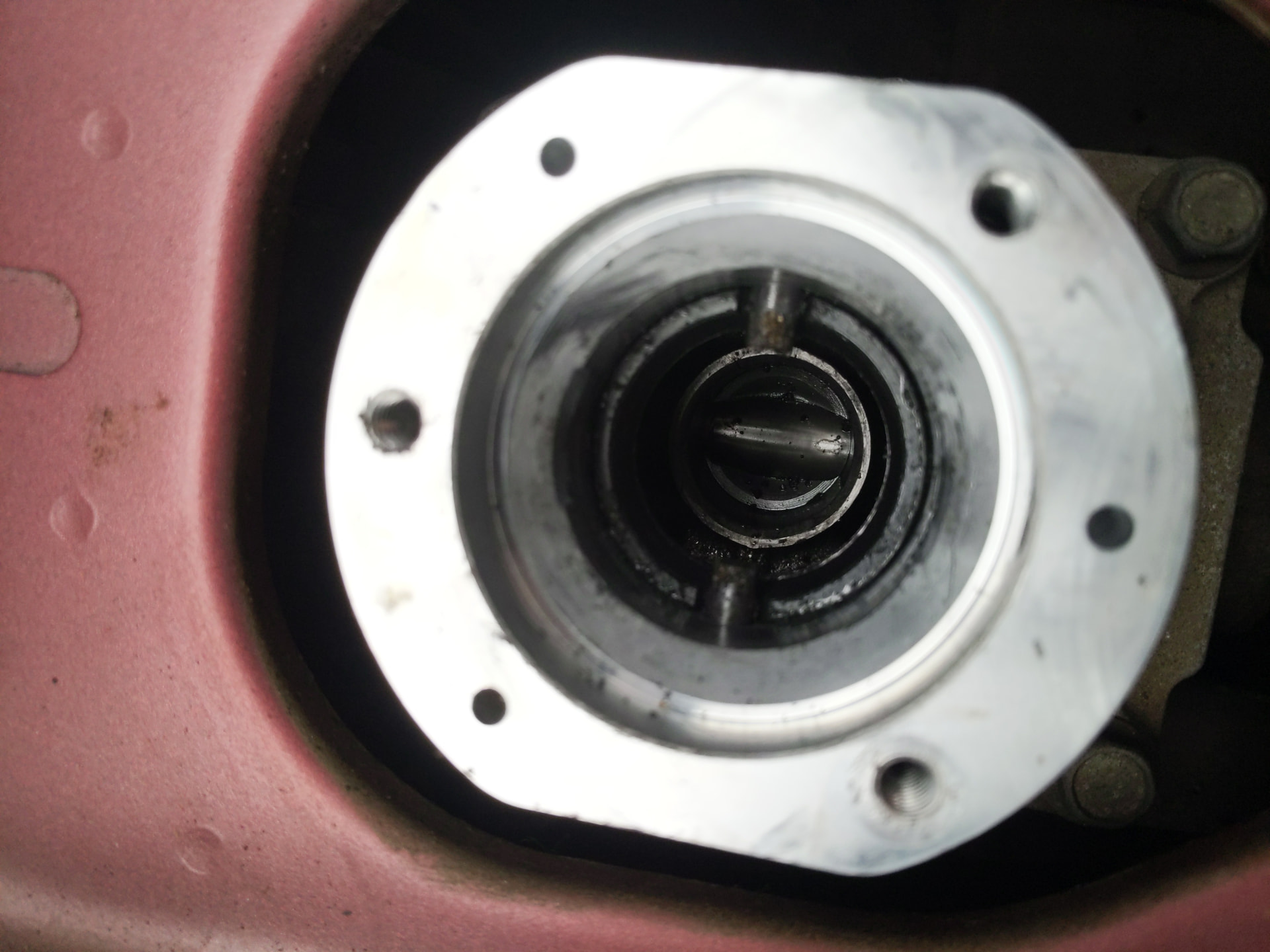 Please note that the rubber boot comes off together with the metal plate and that plastic white ring (arrowed) just needs to be pulled up, off the shaft; no need to cut it off!