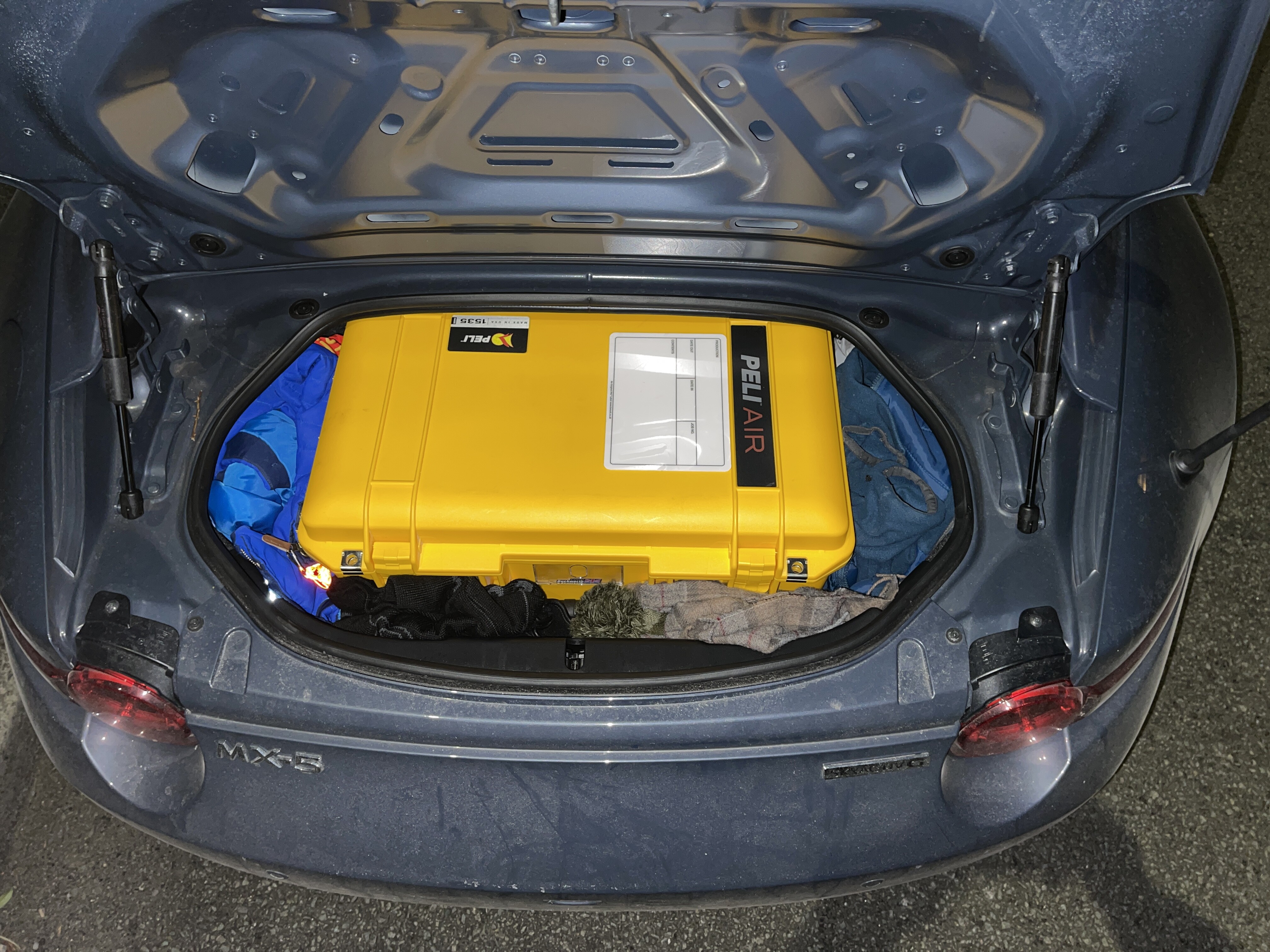 So the kit in question are my two 1535 Pelicases used to haul all my tech and tools for running large shows, festivals and conferences - with the addition of a tiny Peli 1120 for my external sound card. When I went to test drive the car I took one case with me and eyed it up in the boot to guess it would fit another - how close I was to being wrong.