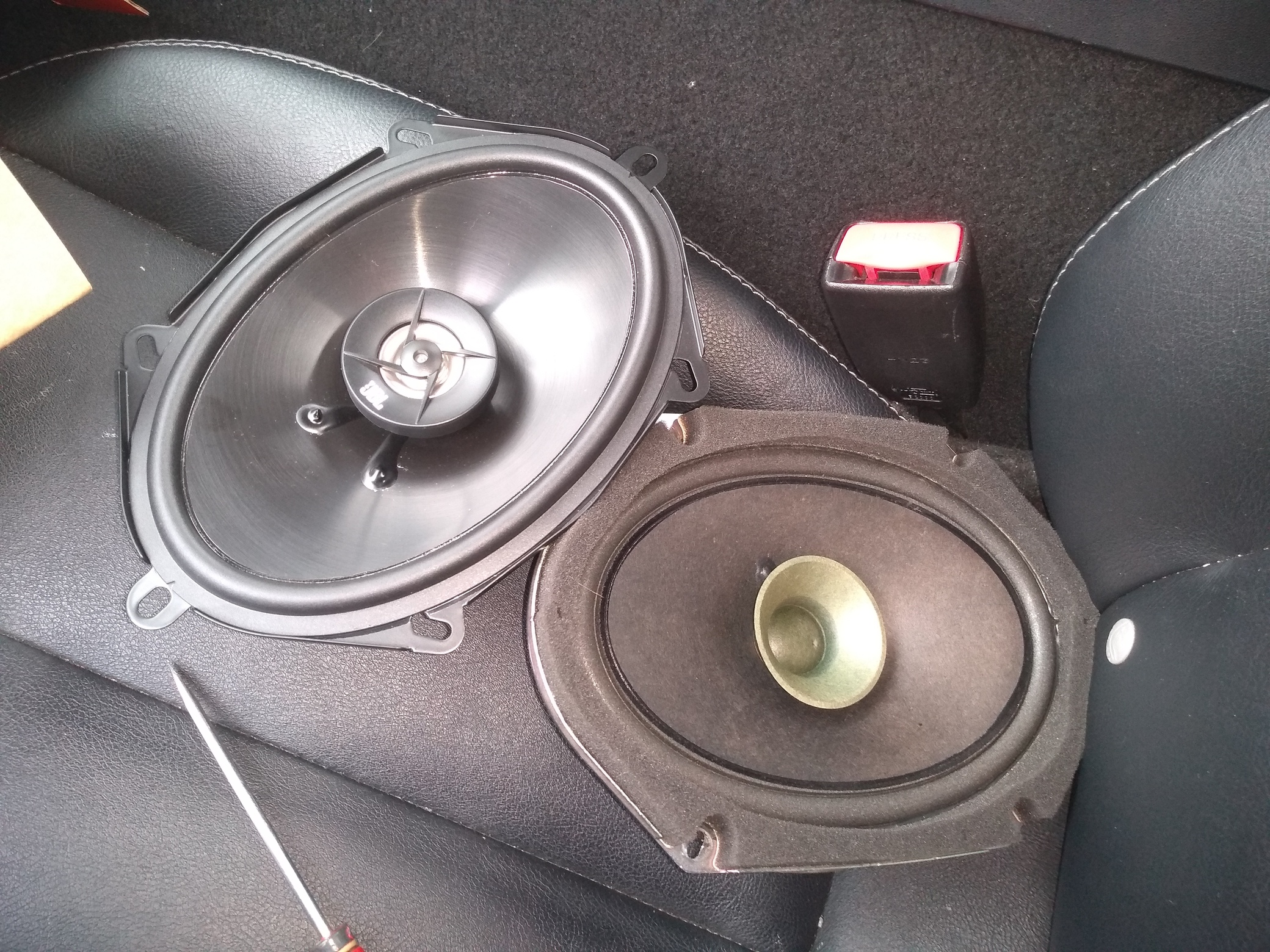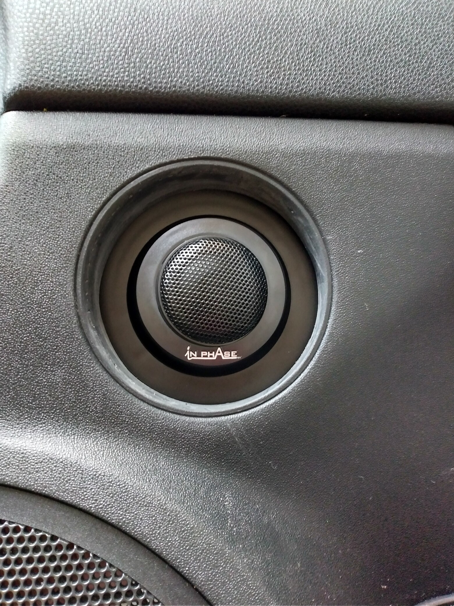 Removed original door tweeters, modified the housing to accept larger tweeter.