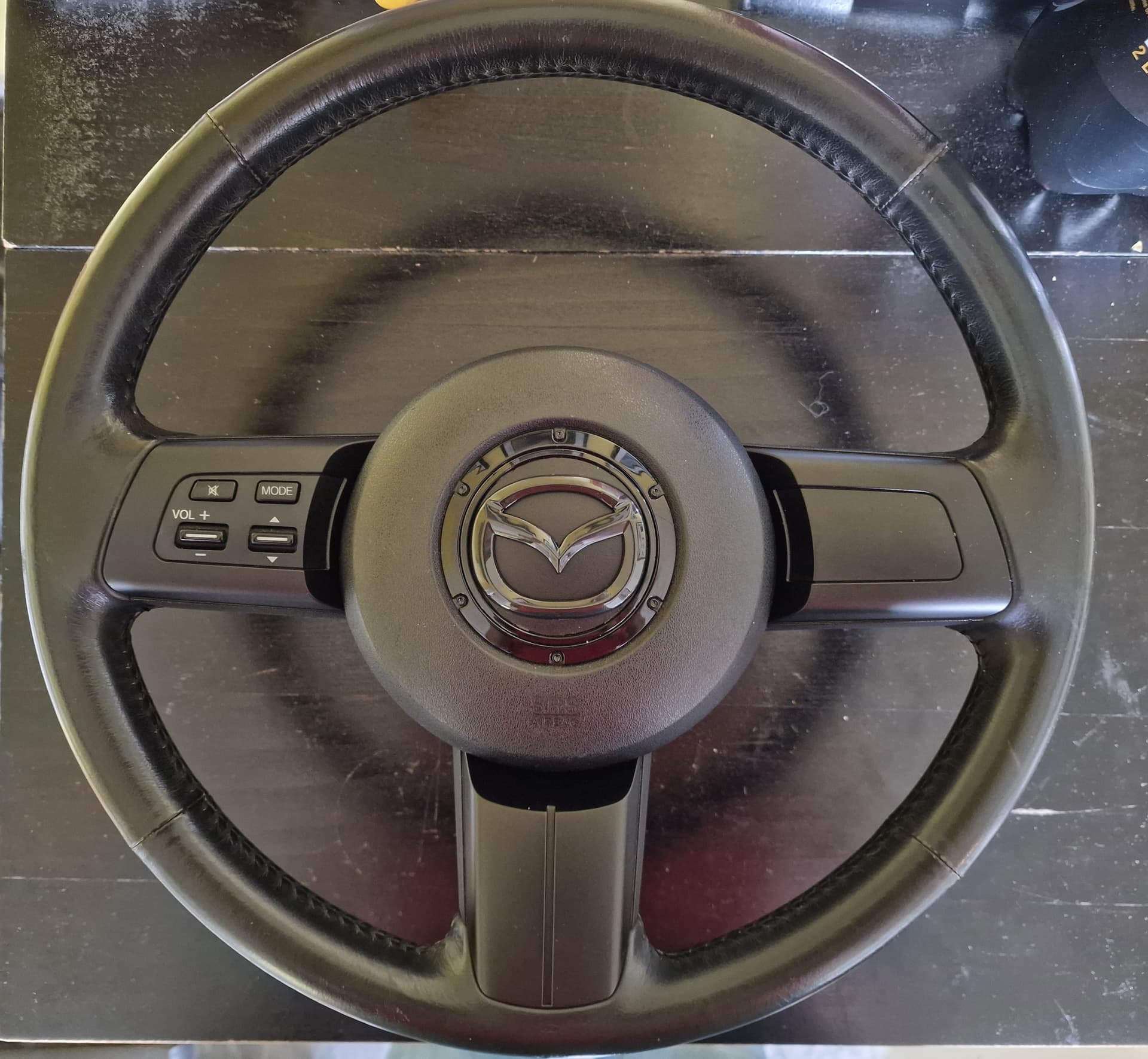 Finished off the steering wheel I repainted last week with a gloss black Mazda badge. Now all I need to do is fit it into the car and it should make the interior look much better and a bit more modern.