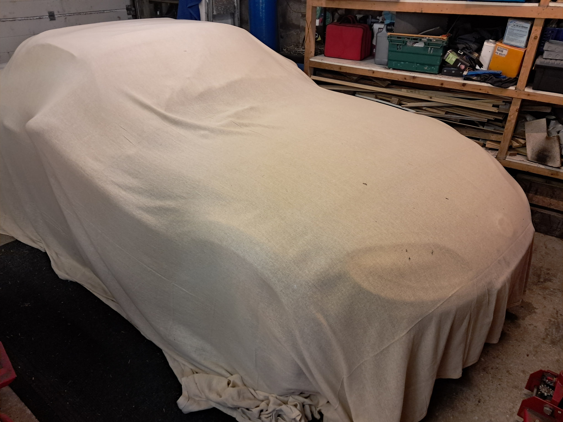 I’m thinking of removing the dust sheets on the car and instead suspending a large sheet above it in the thought that it will stop the dusty bits falling directly onto it and let air circulate underneath it. Think garage gazebo ![]()