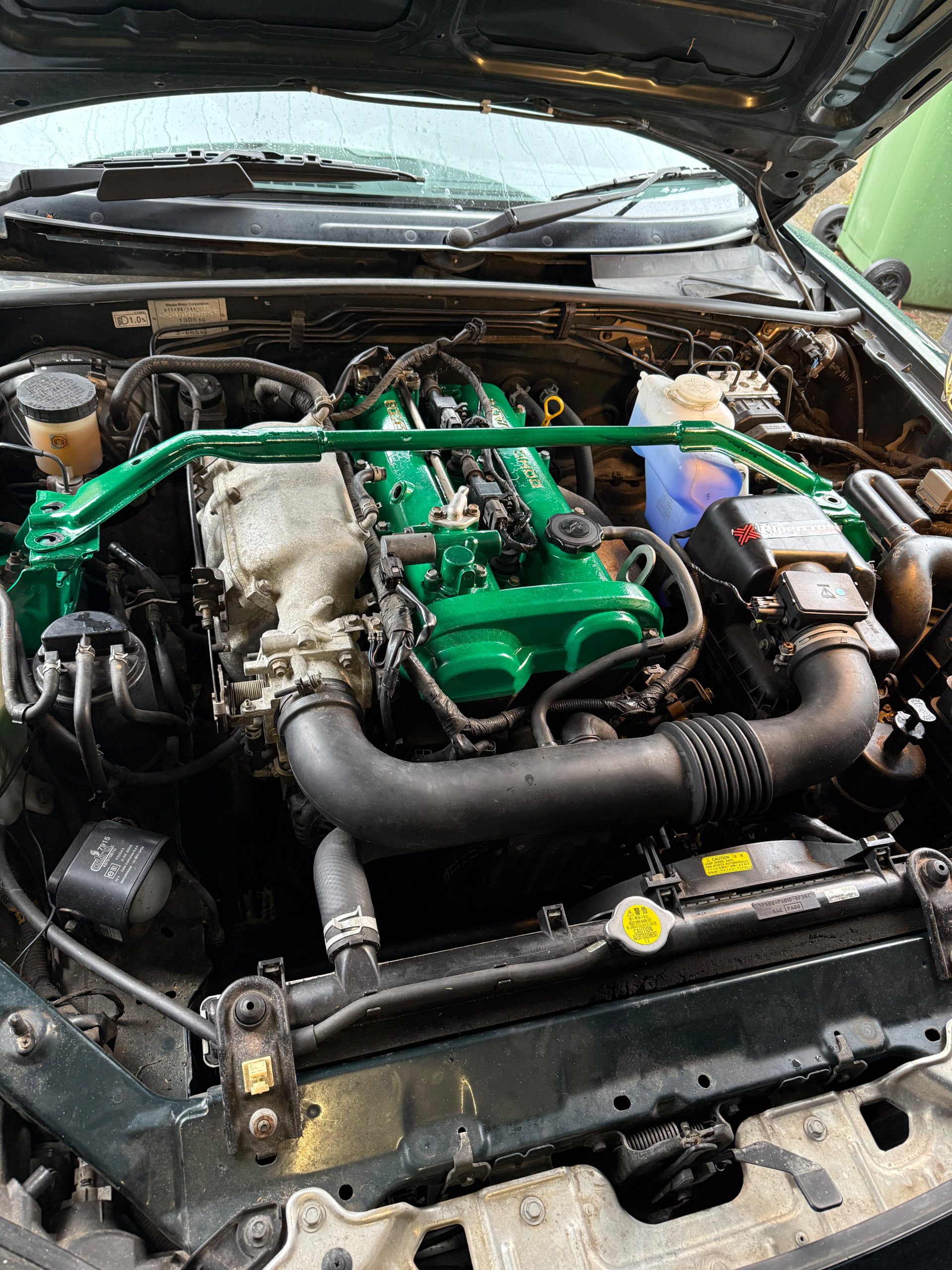Fitted new strut brace and rocker cover. Had to fit new PCV valve as old one was brittle.