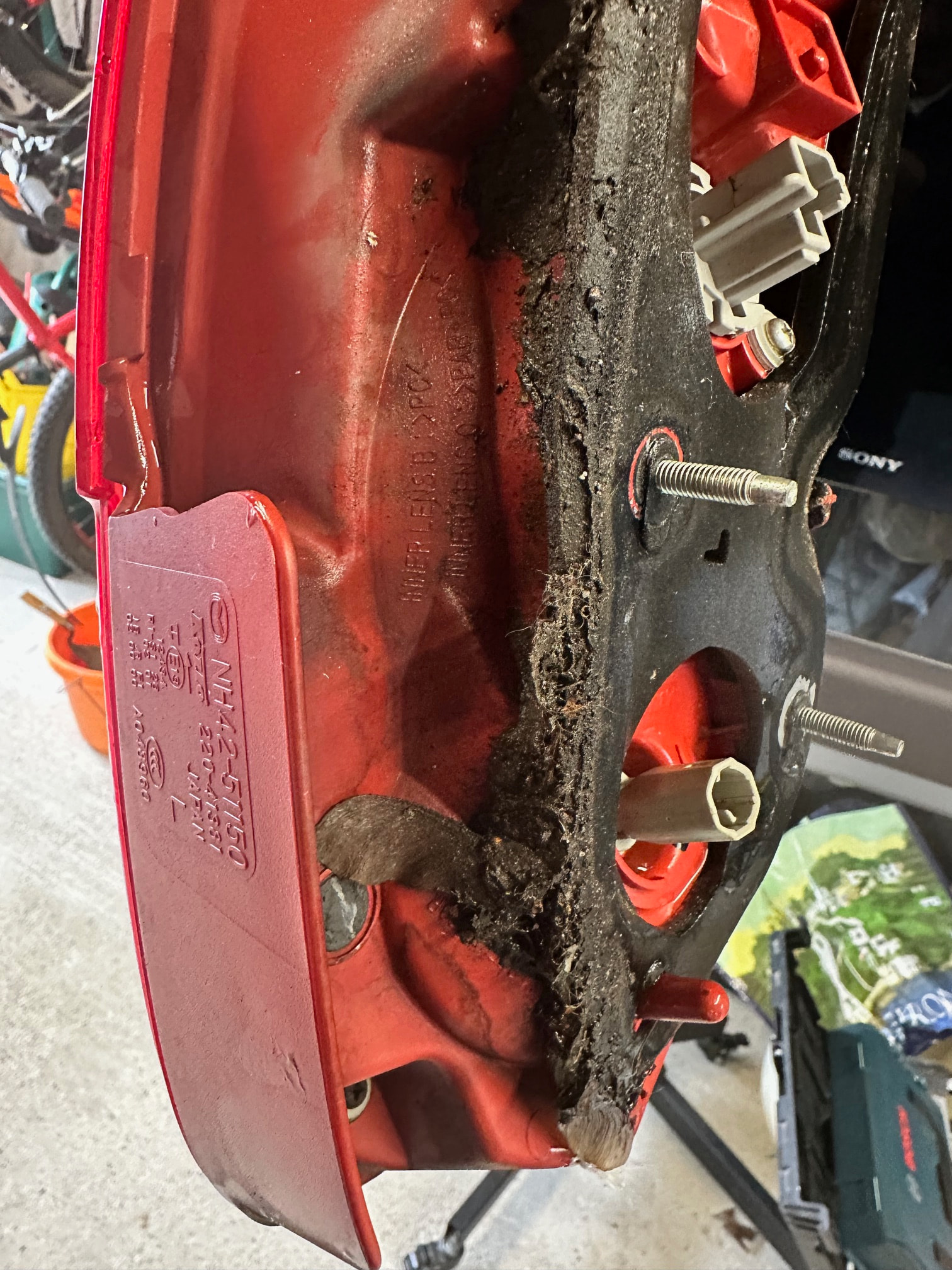 Water in the bottom of the boot pan soaking the boot liner. Cleaned up both rear light clusters that looked like this……..