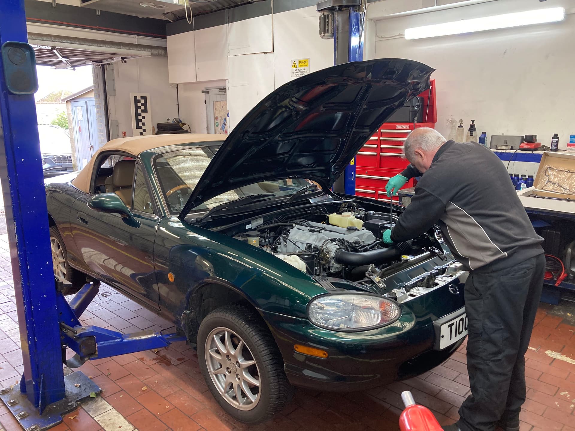 It is with Steve Flowerdew (top tech with Eden Mazda) to have a new cam belt plus all fluids done today.