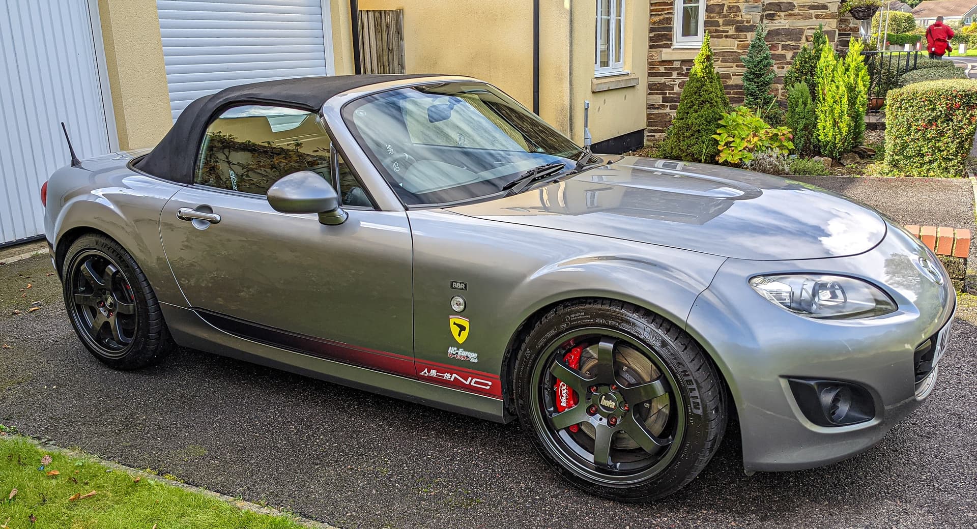 Yours is one of those MX5’s That stands out in a crowd ‘ Lovely colour too’ It’s a real beauty … I stopped to look at It when my eyes caught sight of it. I don’t do that with too many, Enjoy it, I know you do ! Best from Ray in Essex… glad you don’t live in Essex I’d have a bit of competition…I see you like stickers So do I. I love tinkering with my car. Personalising is so enjoyable, I know I am doing something nice when little old ladies stop and pass comment … “ oh isn’t your car lovely “ Etc. Makes you feel good too…lastly … is the new sticker the one that fades along the doors ? Lastly does the wording come as part of the transfer?