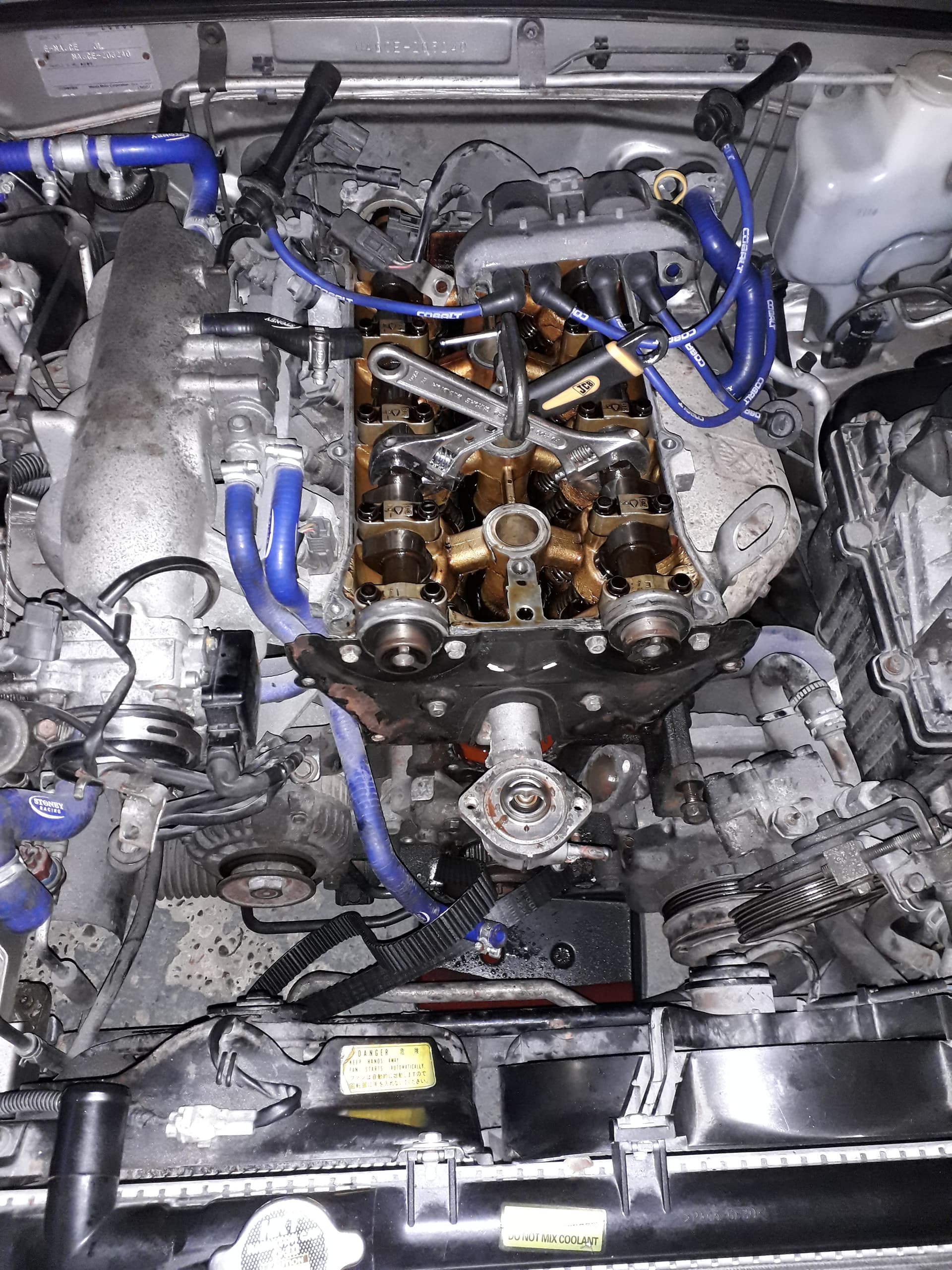 Well it’s all apart except for the crank bolt, still waiting for the locking tool. Got to clean everything up and replace cam seals, cas seals and water pump. Just got to remember where it all goes now