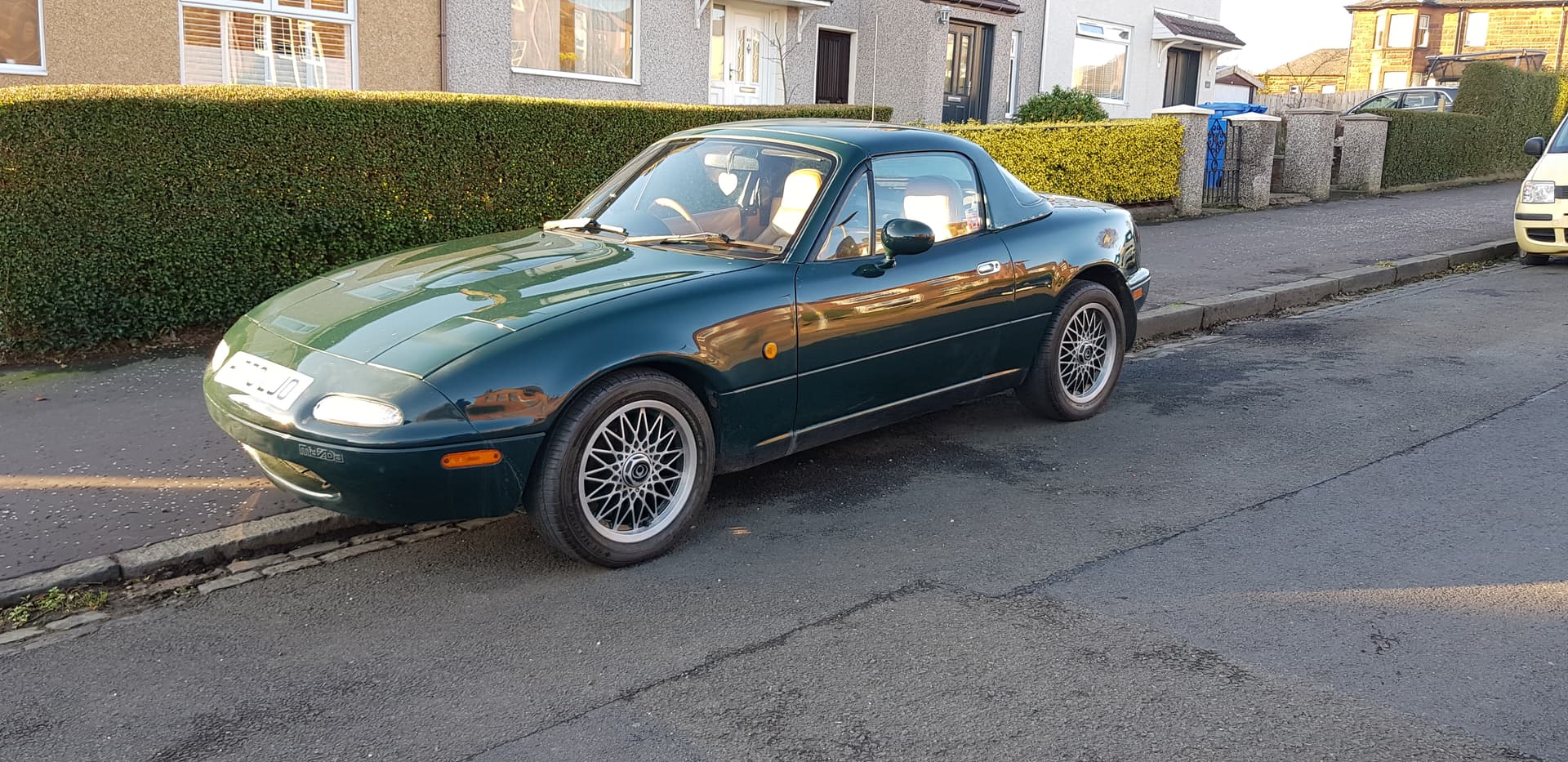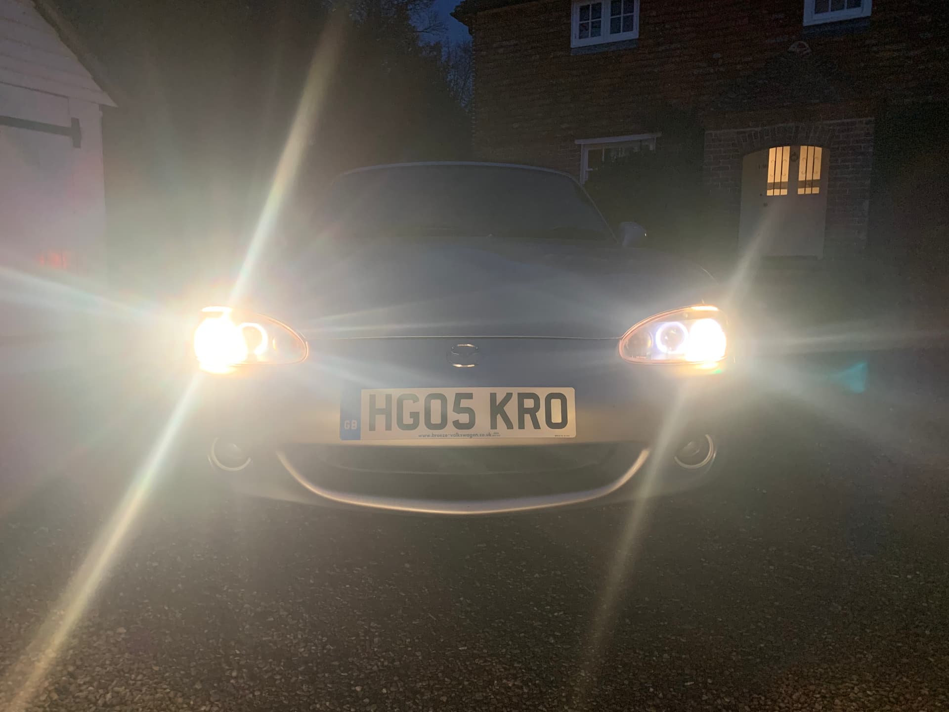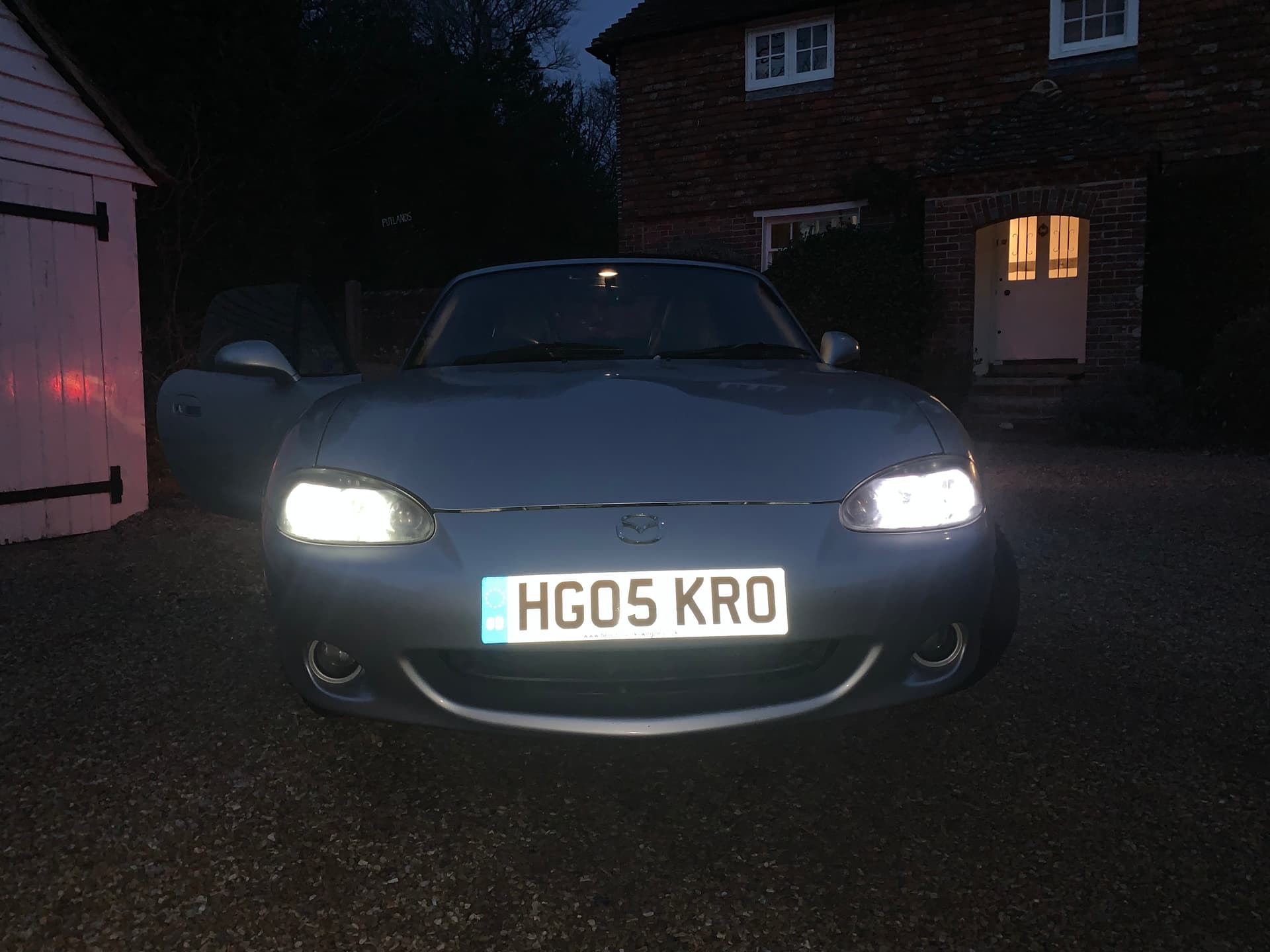 Me at 6pm: Finally got two working headlights on the NB. At least it was easy to check they worked in the dark.
