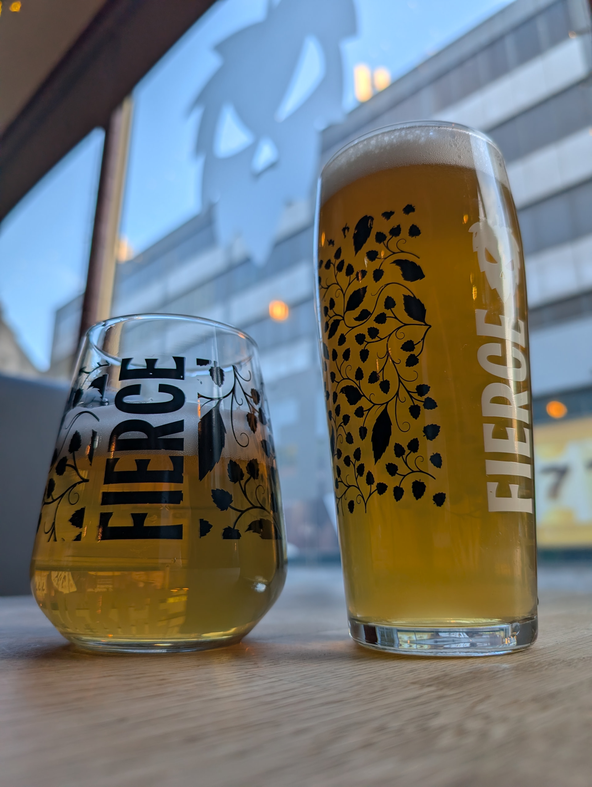 The one on the right is a pint of Fancy Juice (or Funcy if you’re local to these parts), on the left a half of 0.5 Rhubarb Pale Ale.