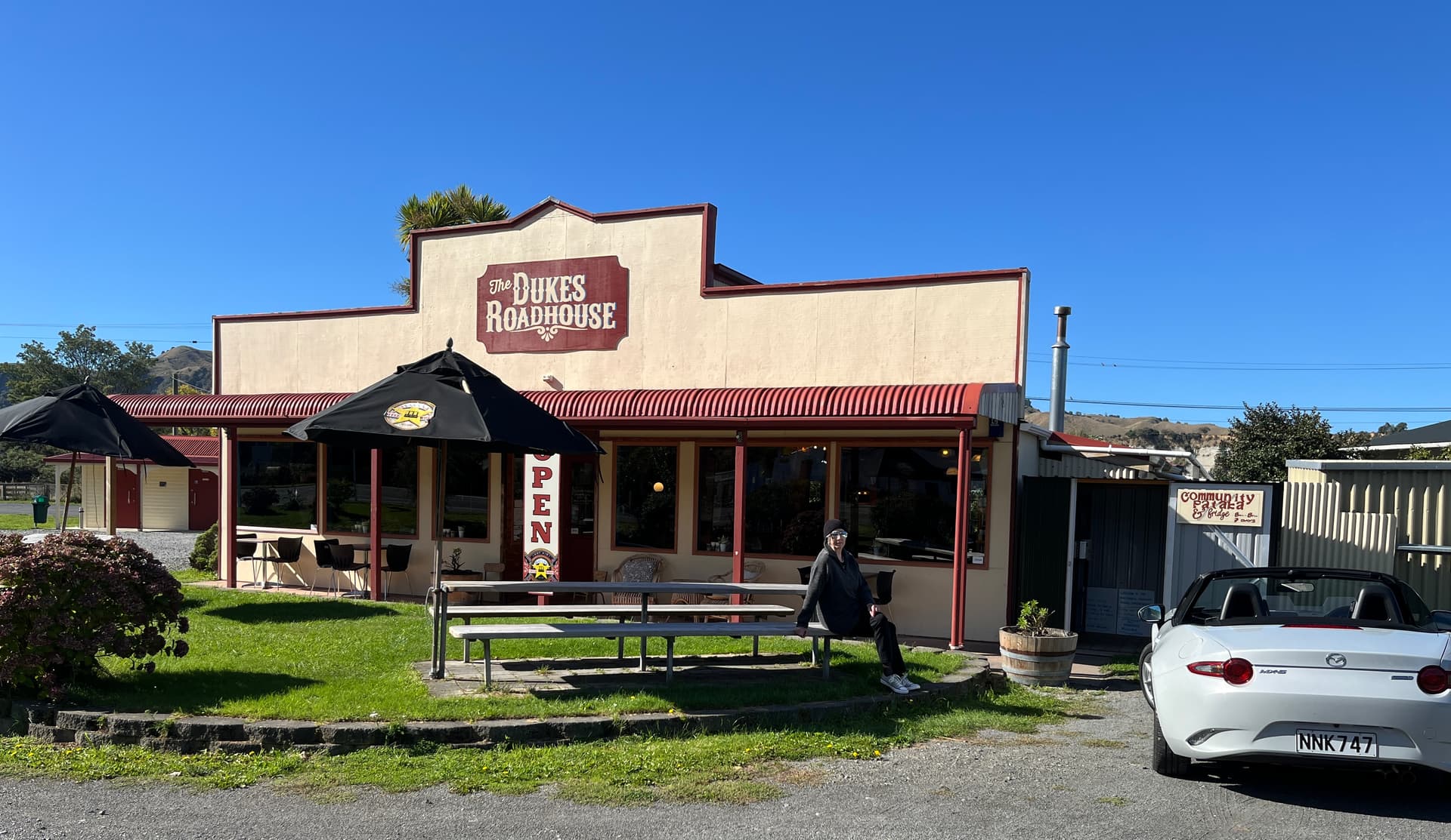 We had a wild start to the week with gales, thunderstorms and even a tornado in the next town up the line! By Wednesday the skies were clearing and Thursday was forecast to be fine so we made an early start and headed up country for a scenic drive. We had a two hour drive to get to our starting point, and as that involved motorway and main road driving so we opted to start with the hood up. Got to Mangaweka for morning coffee and then headed inland. Crossed the Rangitikei River and climbed into the hills to Peep-O-Day, so named as it is the first part of the district to see the sun - at least on sunny days. Then we descended on the eastern side of the hills and back to civilisation.